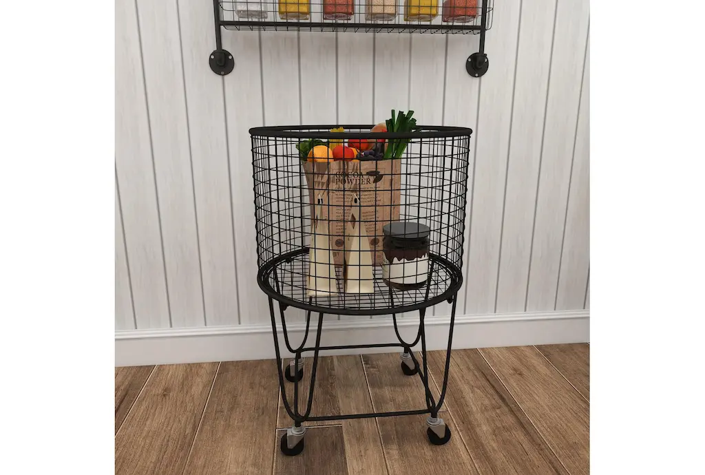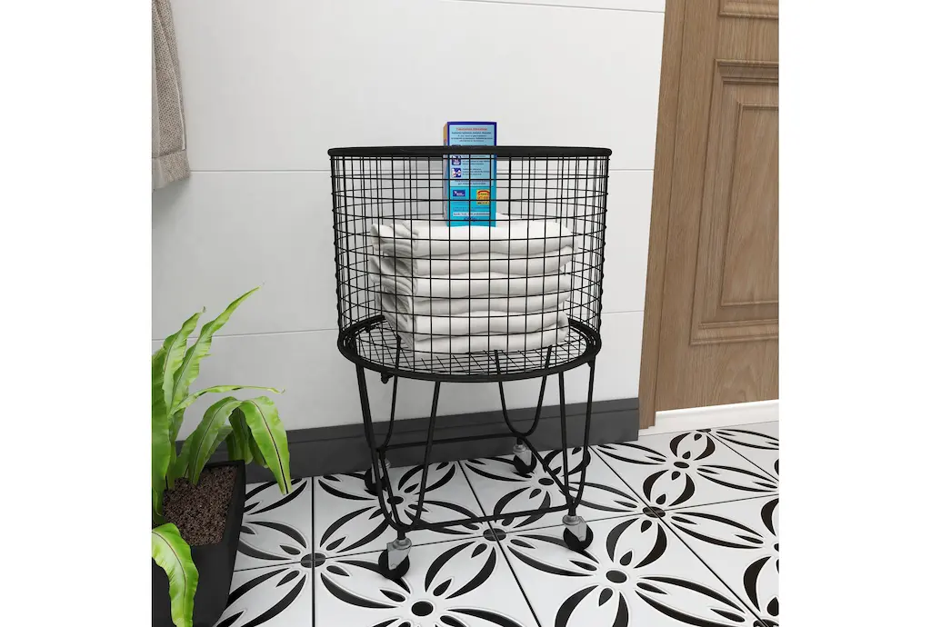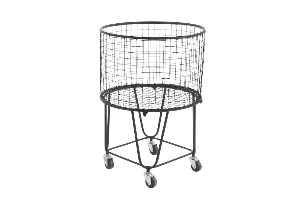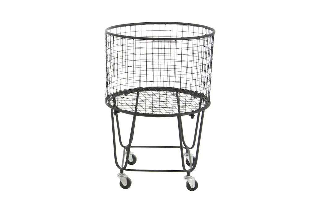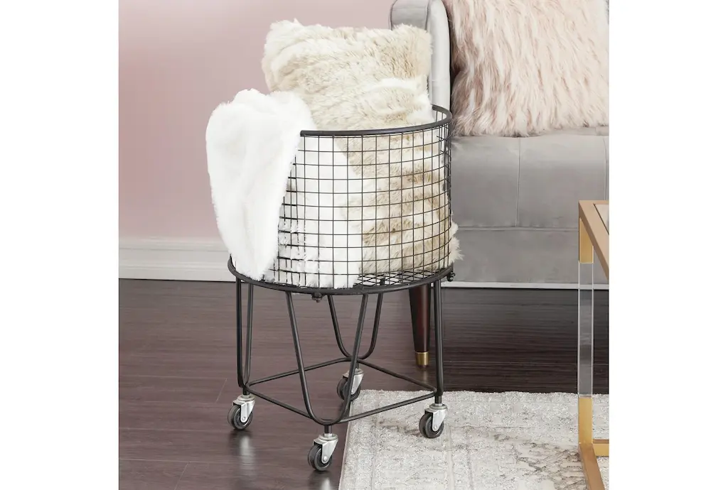This industrial rolling cart is a multifunctional home piece that can serve as a laundry hamper, pillow and blanket basket, cart , or planter stand. This item ships in 1 carton. Easy-roll swivel caster wheel. Suitable for indoor use only. Some assembly required. Maximum weight limit is 20 lbs. This is a single black colored laundry cart. Industrial style.