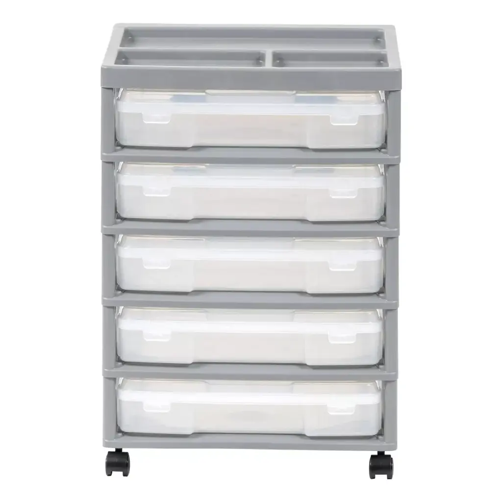 Iris 5 Drawers Scrapbook Plastic Rolling Storage Cart With Organizer Top With Casters Gray: Office & Desk Storage Organizer, Under Desk Drawer