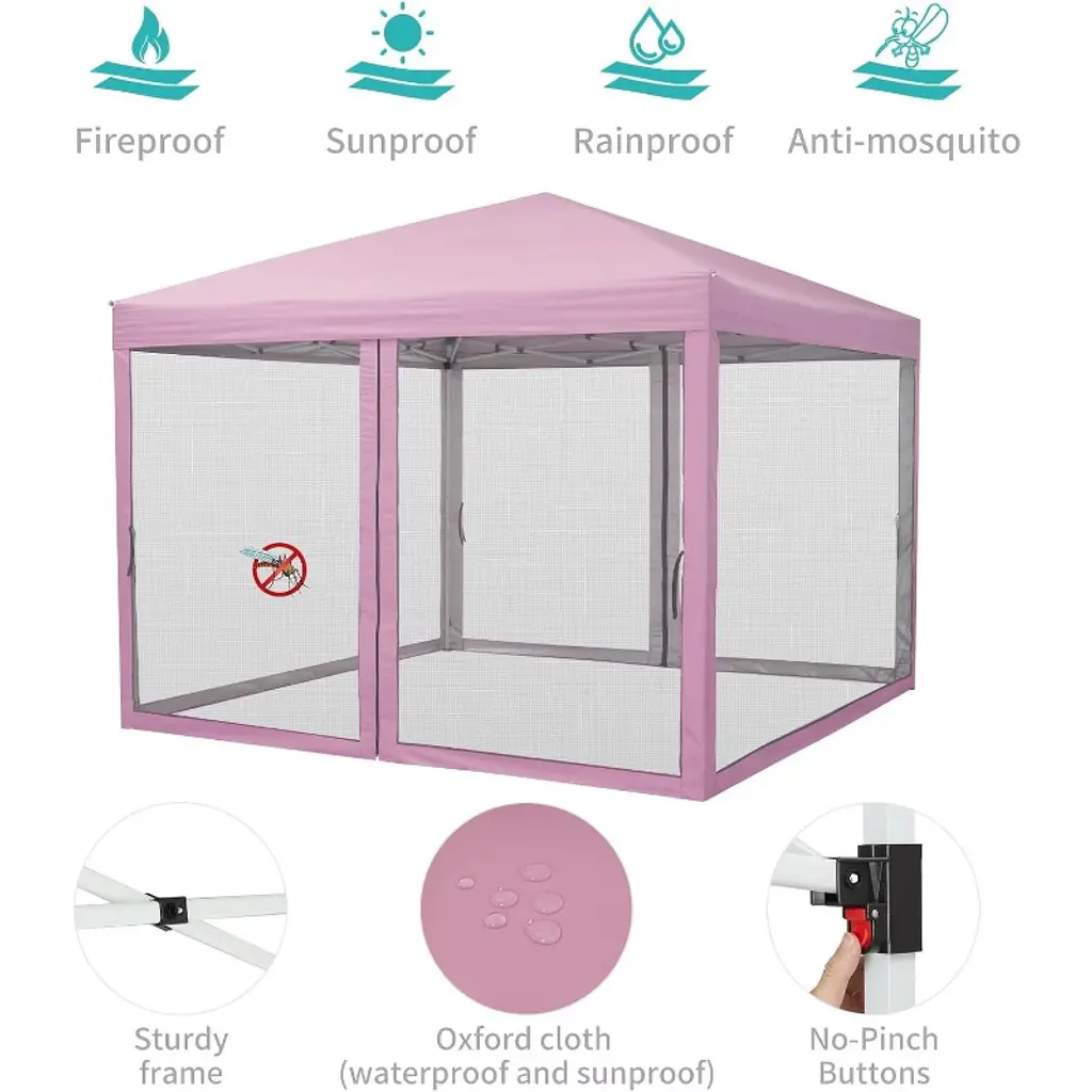 10 X 10 Ft Pop Up Canopy, Party Tent With Mosquito Netting, Height Adjustable Instant Sun Shade, Portable Screen Shelter For Parties, Camping, Events