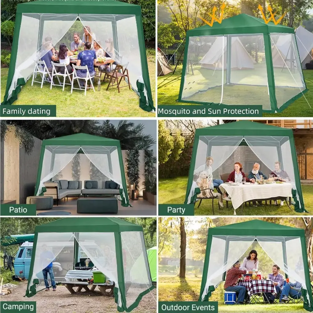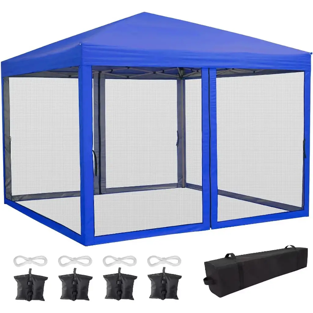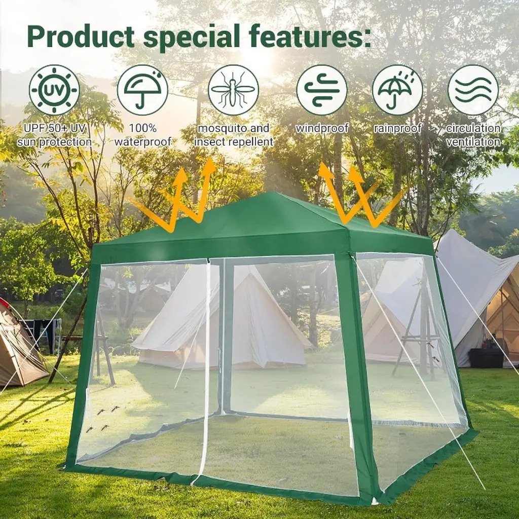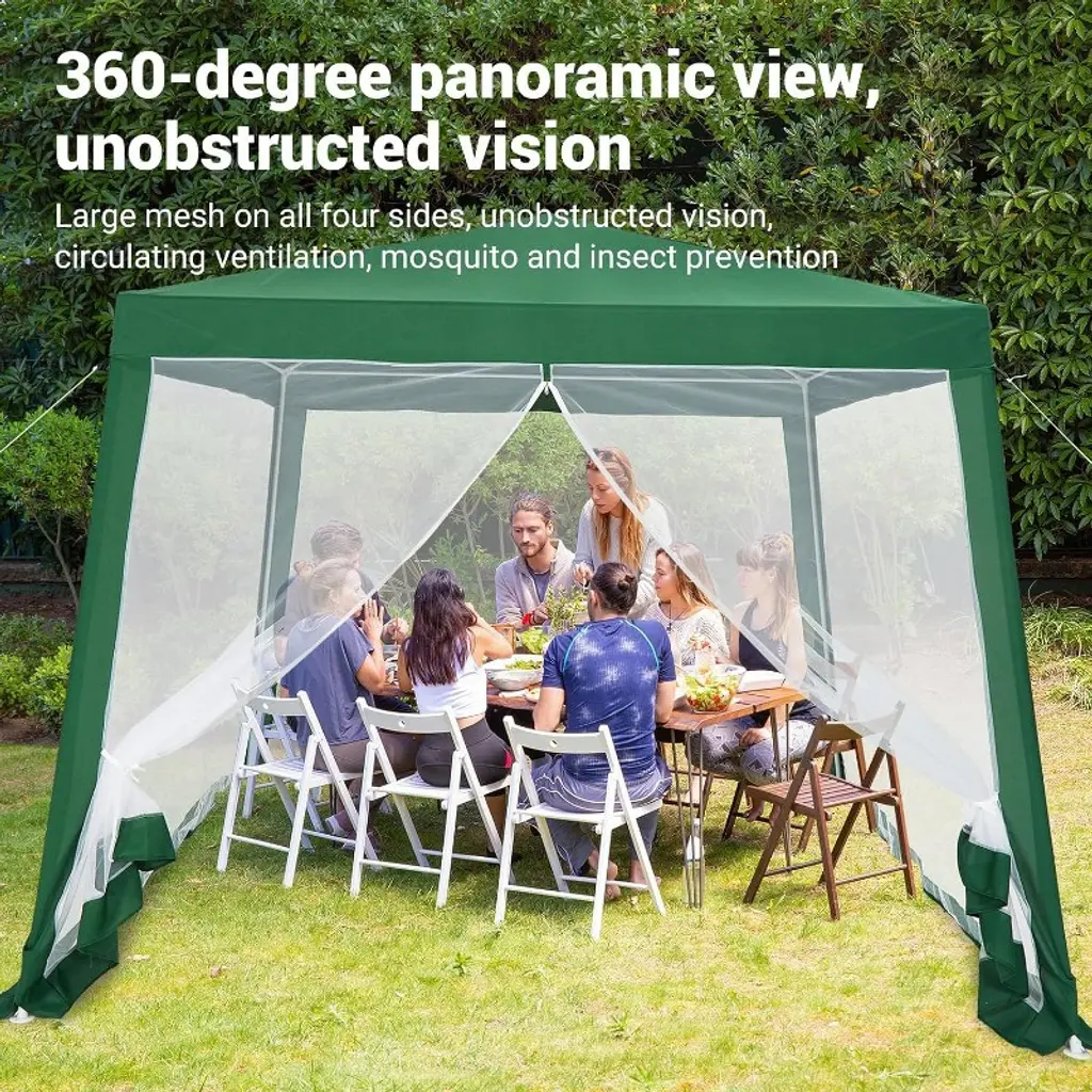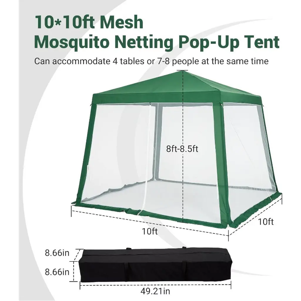 10x10ft Easy Pop-up Canopy, Commercial Pop-up Gazebo Tent, Waterproof Outdoor Screen Tent With Mesh Mosquito Netting Side Walls For Parties, Camping