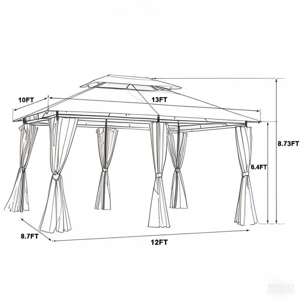 This 13x10Ft gazebo provides spacious space and is fitted with four-sided sidewall for insect protection and wind and rain protection.With it you will enjoy a comfortable and relaxing courtyard life with your family and friends.