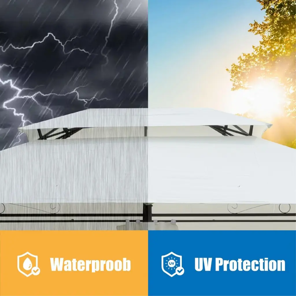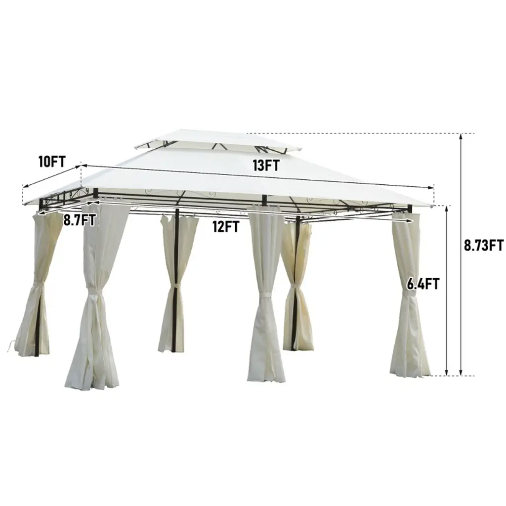 This 13x10Ft gazebo provides spacious space and is fitted with four-sided sidewall for insect protection and wind and rain protection.With it you will enjoy a comfortable and relaxing courtyard life with your family and friends.