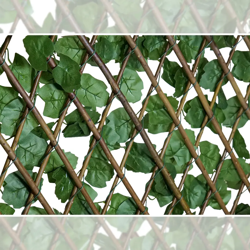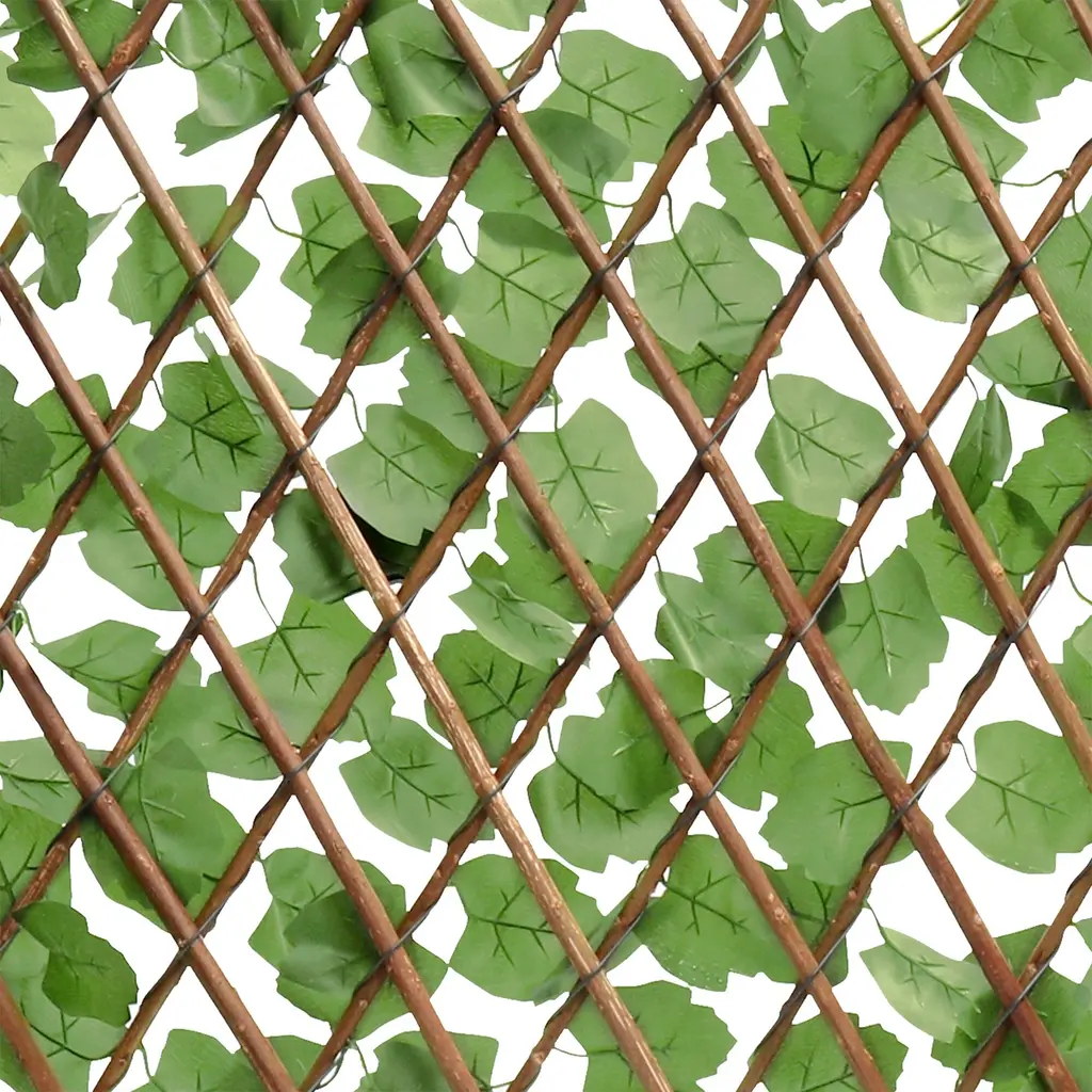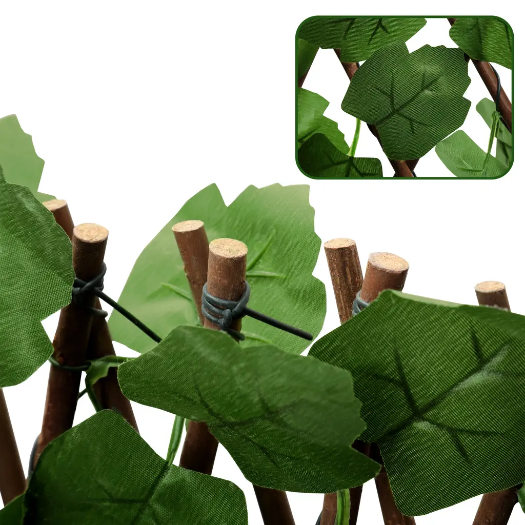 The fence is made from willow frame with decorative faux ivy leaves attached, provides a natural look, no maintenance, no watering, no trimming, easy to clean with water. The leaves of our fence are exquisite and simulated with clear veins, high dense and lightweight, block most UV rays, keep some privacy and allow the air go through freely. No matter for indoor or outdoor use are all great. Expandable to create an instant privacy fence screen covered with faux ivy leaves. 50"height x 32"width when fully closed, can be expanded to 110 inch in width,24 inch in height. Flexible, expands or contracts to your desired dimensions and privacy, ideal for wedding decoration, outdoor landscaping design, greenery wall covering, garden fence, sound diffuser privacy hedge, balcony privacy screen and home decor. Easy installation, just tie the fence to any supporting column or posts.