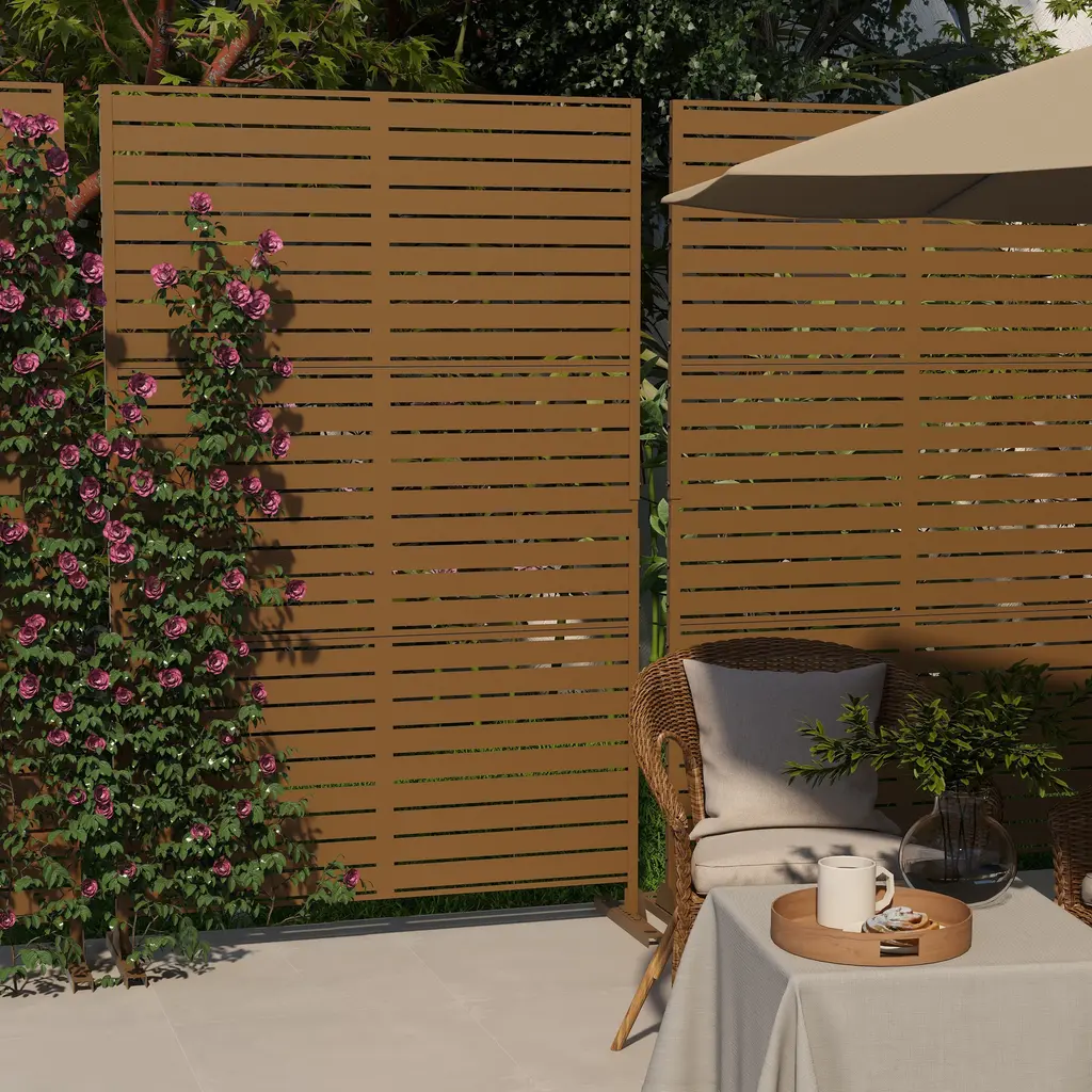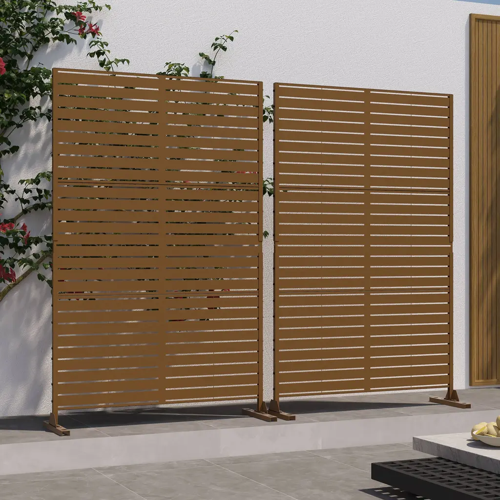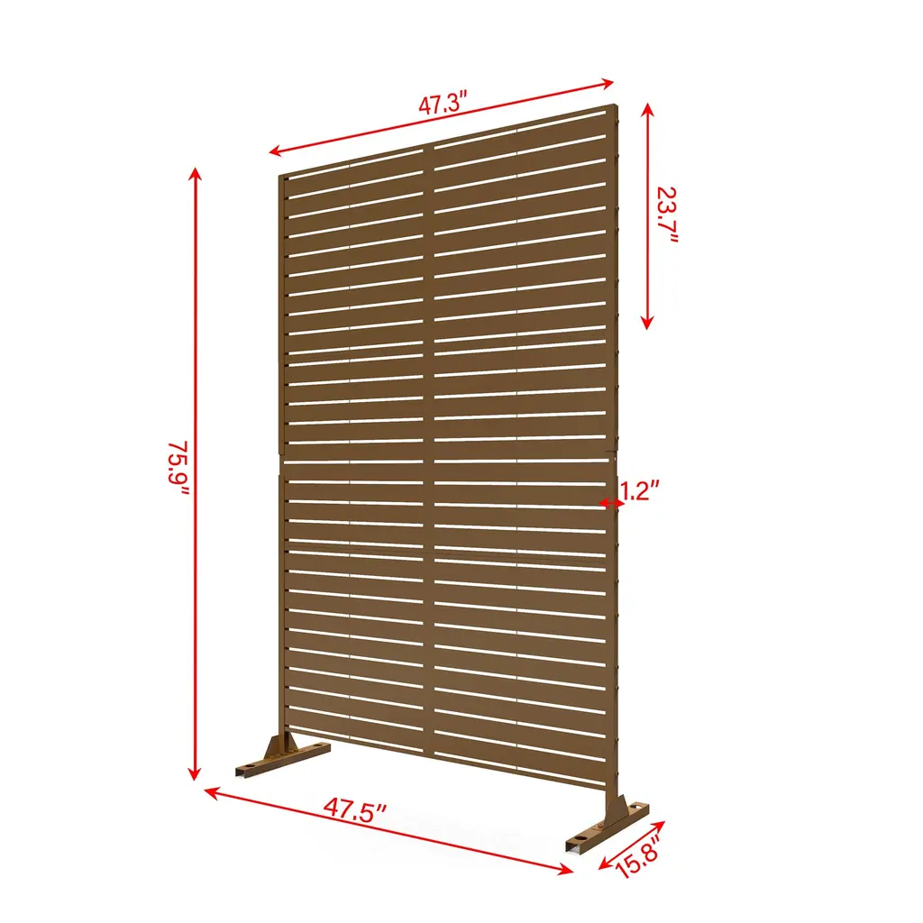 2Set Patio Outdoor Privacy Metal Screens And Panels - Brown - 014-Horizontal Stripe