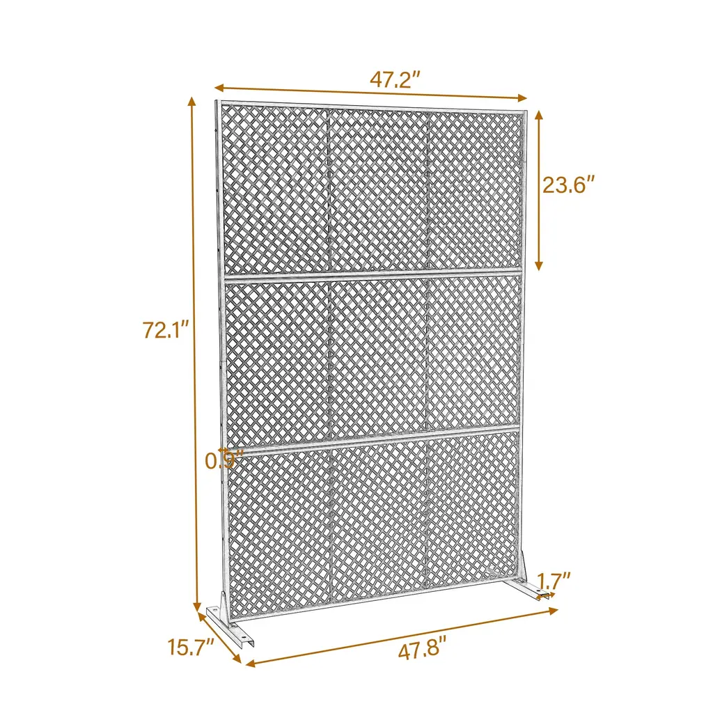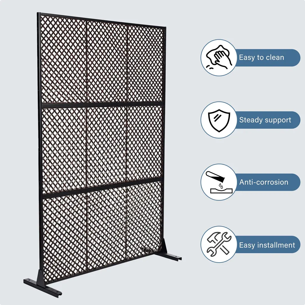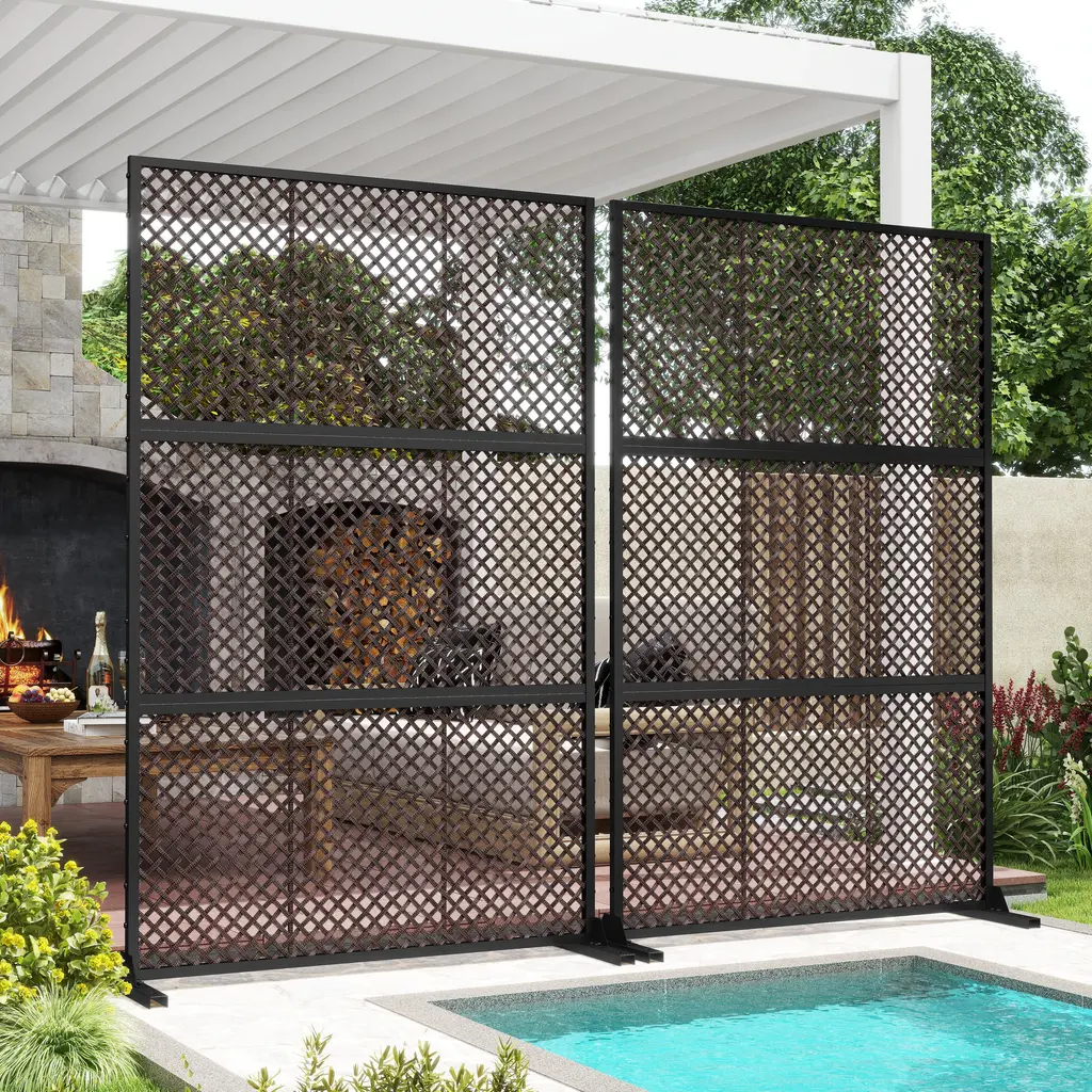 This outdoor privacy screen is made of metal and stainless steel, so it has a very modern look. The outer layer is coated with a special material that can resist UV radiation and rain erosion. Outdoor privacy screens can block the view of neighbors and passersby, and can also decorate your house and garden. It can also be used as a support structure for climbing vines and flowers to form a unique plant wall. This outdoor privacy screen will be an eye-catching addition to balcony, patio, garden, deck, pool, backyard. Outdoor screen panel decorative can also be placed in living room, dining room, sunroom, bedroom, hotel and other scenes that need to isolate the view to make the space more elegant and beautiful.Product informations:Highlights: