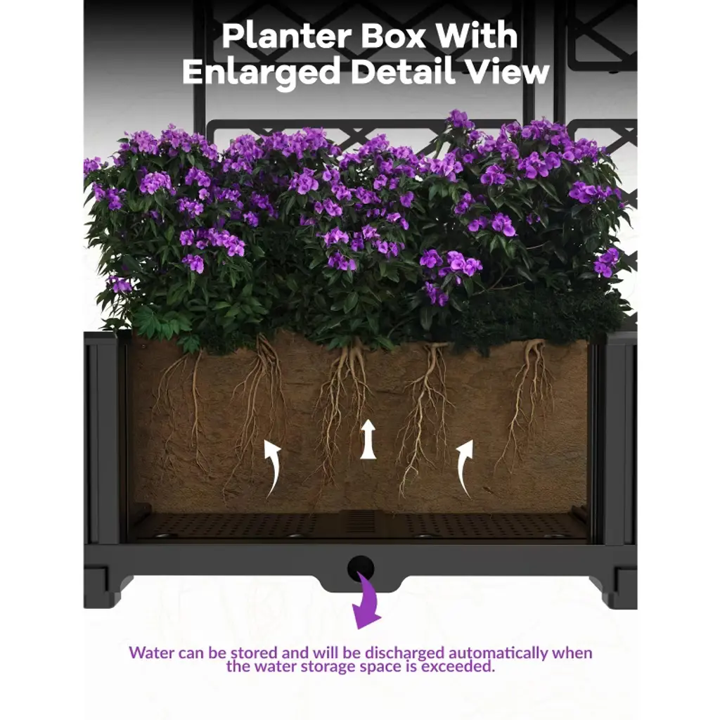3Pcs Plastic Plant Box with Metal Trellis, Raised Garden Bed with Trellis Planter for Climbing Plant Outdoor Raised Planter Box Privacy Screen for Patio Balcony,Planter Box for Backyard Patio