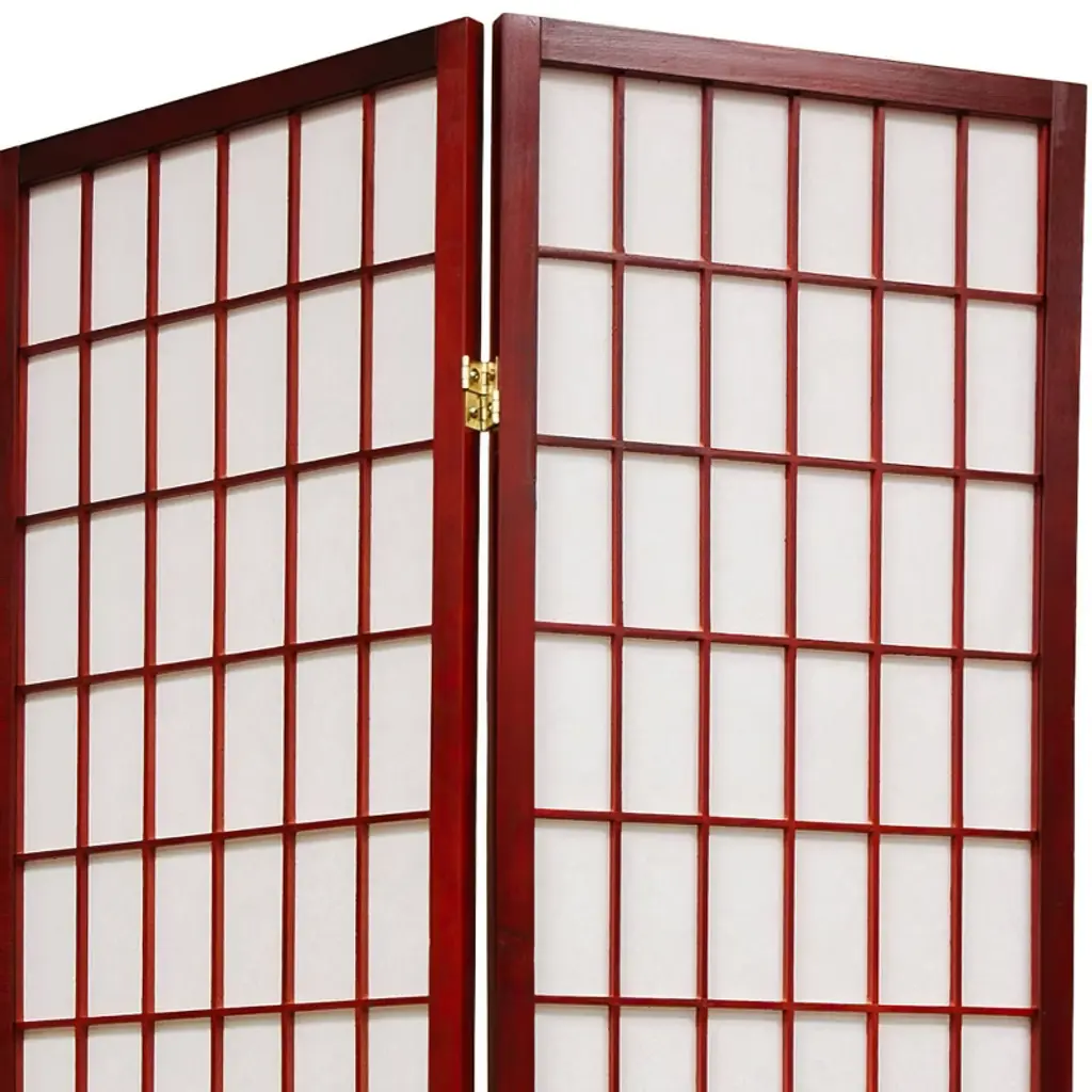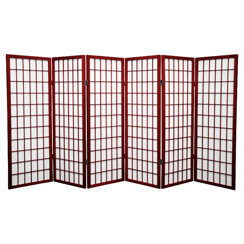 4 Ft. Tall Window Pane Shoji Screen - Rosewood (6 Panels): Oriental Furniture, Hardwood Frame, Metal Hardware, No Assembly Required
