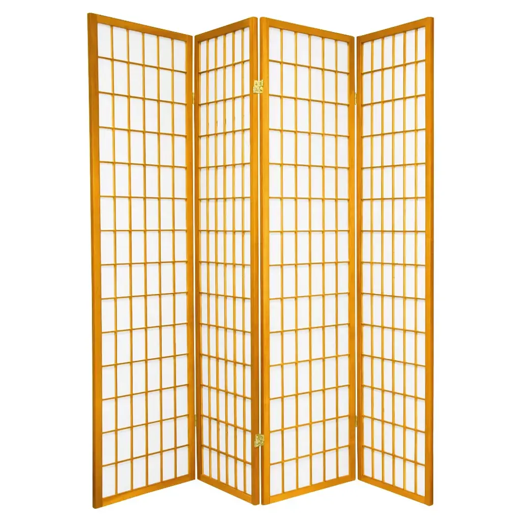 6 Ft. Tall Window Pane Shoji Screen - Honey (4 Panels): Oriental Furniture, Hardwood Frame, Metal Hardware