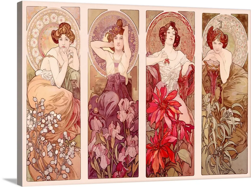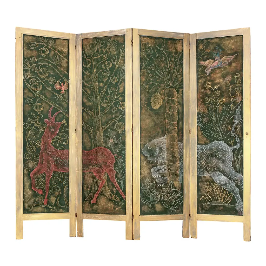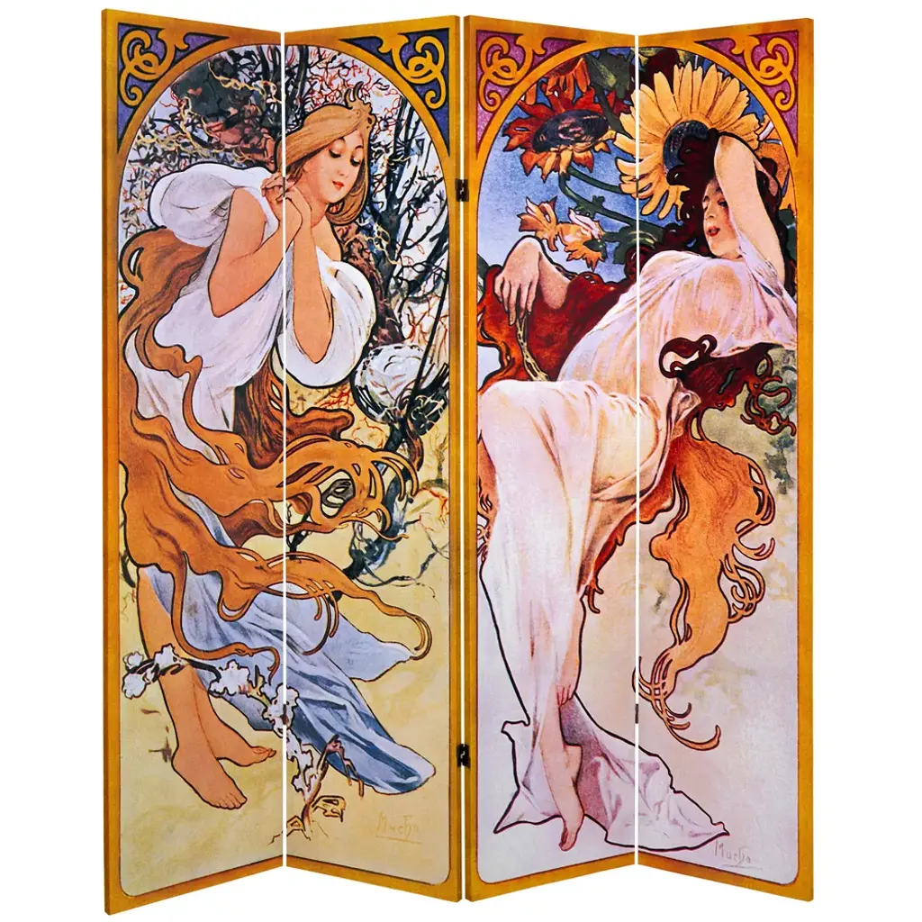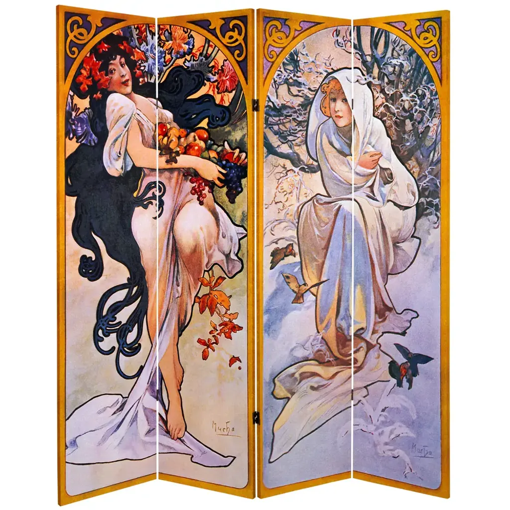 A beautiful representation of the four seasons represented by four women. Spring and summer share one side of the divider while autumn and winter are represented on the other, swap sides for each season or display centrally so all the lovely panels can be enjoyed. Would look wonderful in a changing room or by a vanity but would be equally at home in your living room or shop.