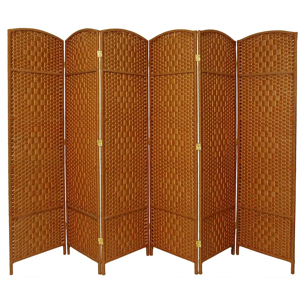 7 Ft. Tall Diamond Weave Room Divider - Dark Beige (6 Panels)