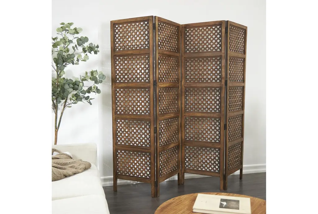 72" Brown Wood Lattice Handmade Hinged 4 Panel Room Divider Screen