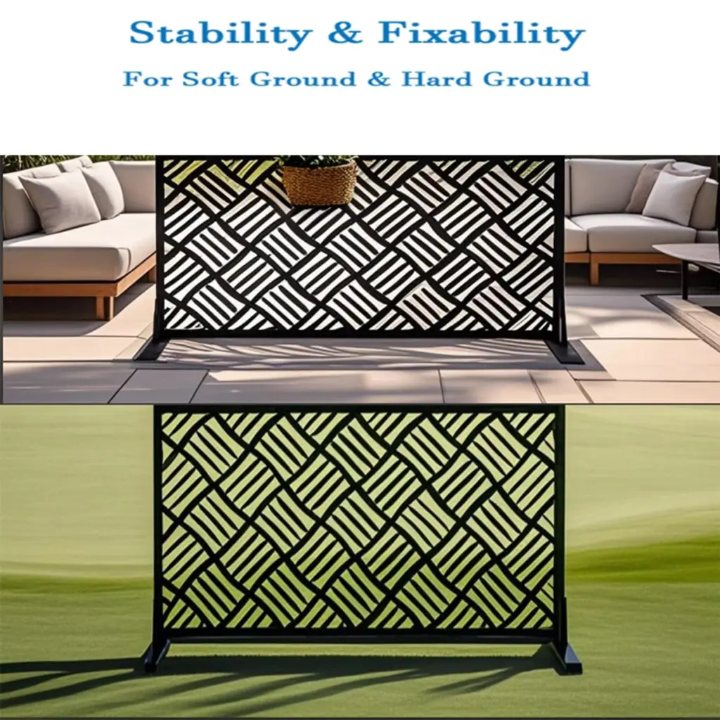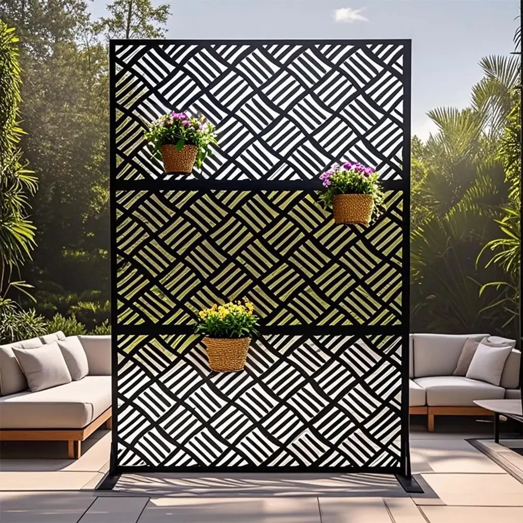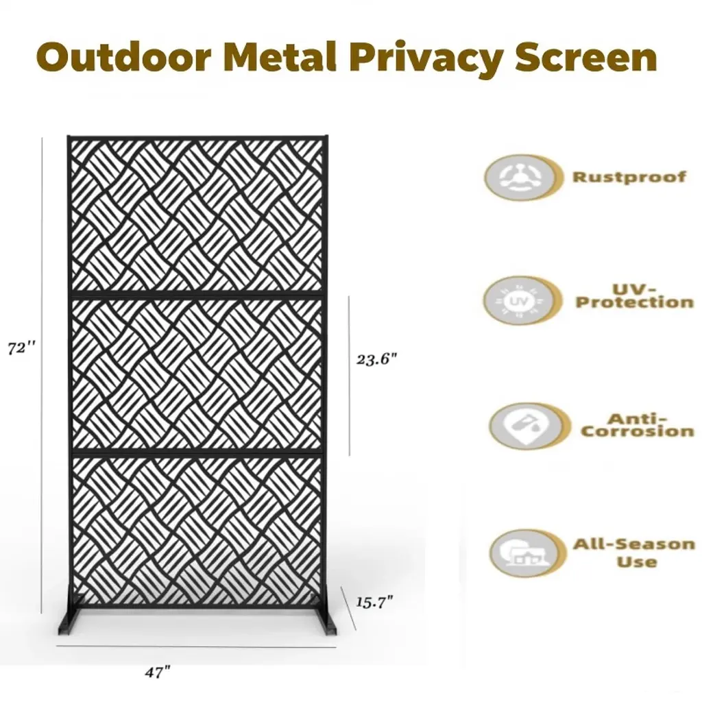 Product informationMaterial: MetalAssembly Required: YesNumber of Pieces: 1Product Dimensions: 70.87 x 47.24 x 0.1 inchesItem Weight: 39.9 pounds Product advantages:Elegant Outdoor Privacy Screen: Its decorative design blends seamlessly with balconies, patios, lawns, or gardens, offering visual appeal while creating a peaceful retreat.Durable & Weather-Resistant Build: Constructed from high-quality metal, this privacy screen is designed to endure outdoor conditions. Its sturdy frame ensures lasting performance, making it a dependable addition to your outdoor living area.Versatile Seclusion Solution: Ideal for creating a private sanctuary, this screen works as a functional fence for quiet relaxation, gatherings, or solo moments. It shields your space from unwanted views while maintaining an open, airy feel.Sophisticated Decorative Accent: Beyond privacy, this screen elevates your outdoor decor with its intricate patterns. It adds a refined touch to any setting, transforming ordinary spaces into stylish, inviting extensions of your home.Easy Integration & Practical Use: Designed for versatility, this panel effortlessly complements various outdoor setups. Whether used as a standalone divider or paired with greenery, it combines practicality with aesthetic charm.