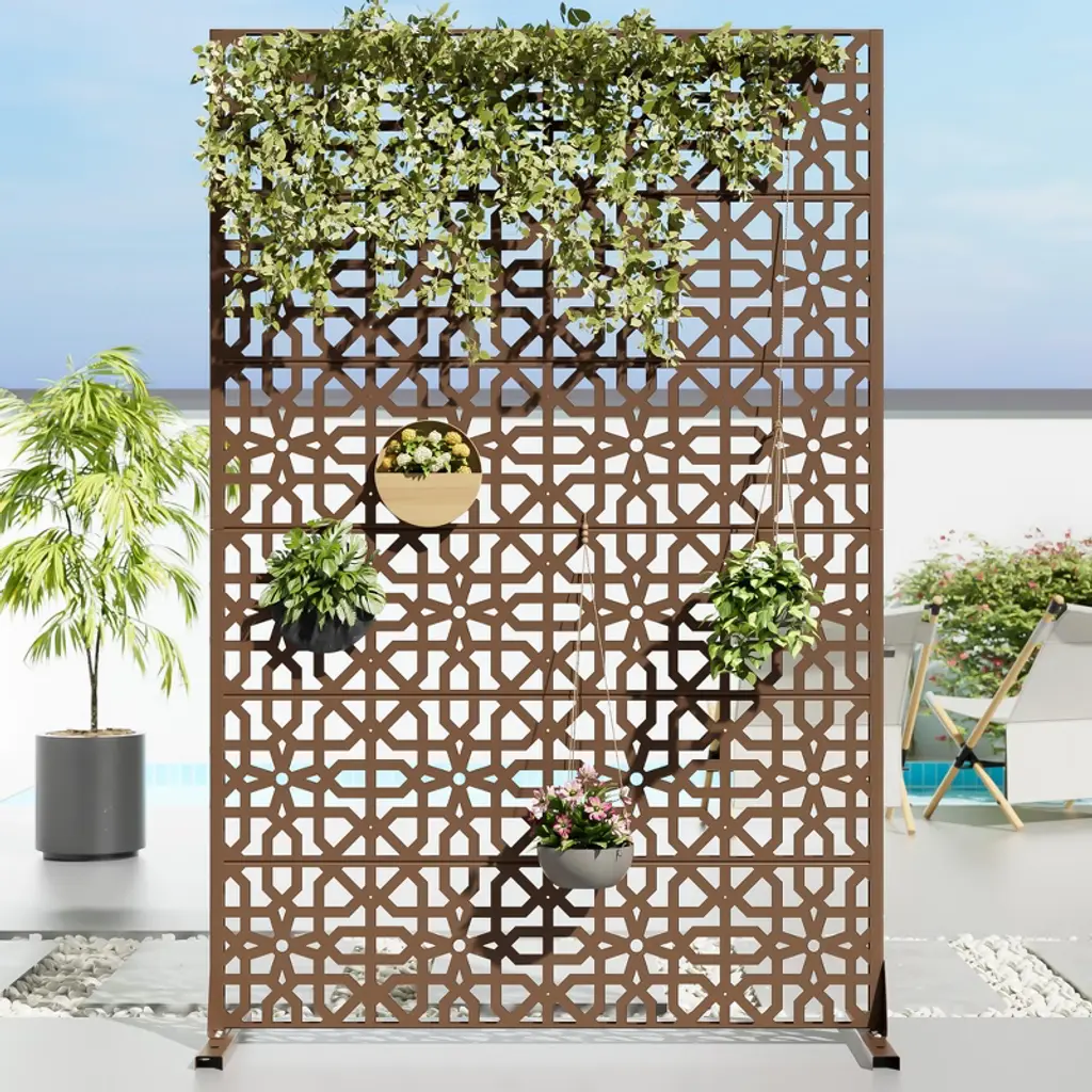 This exceptional privacy fence screen is a versatile choice that not only establishes a secluded space but also shields against intense sunlight. These panels, featuring a distinctive laser-cut pattern, seamlessly mount on walls, adding a decorative touch to your surroundings. Compact yet effective, these privacy screens are perfect for dividing spaces and enhancing the overall layout of any area.