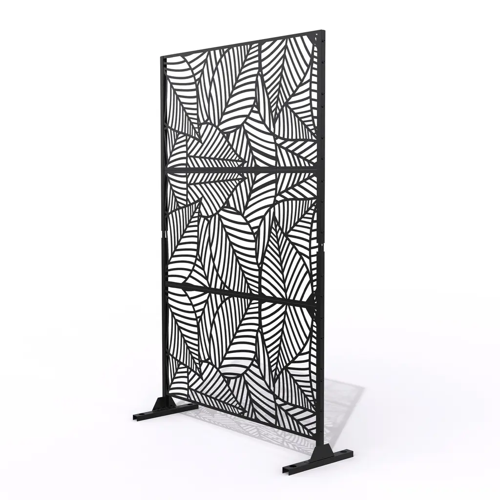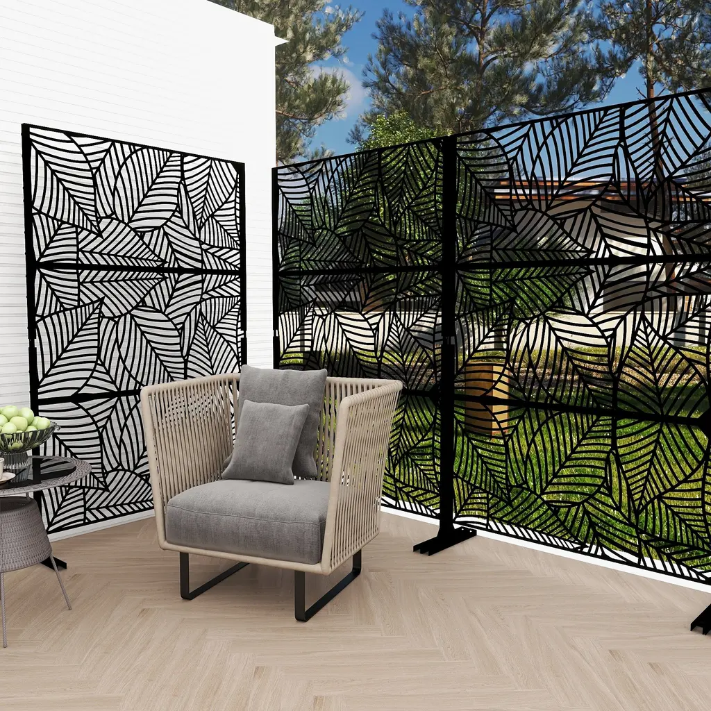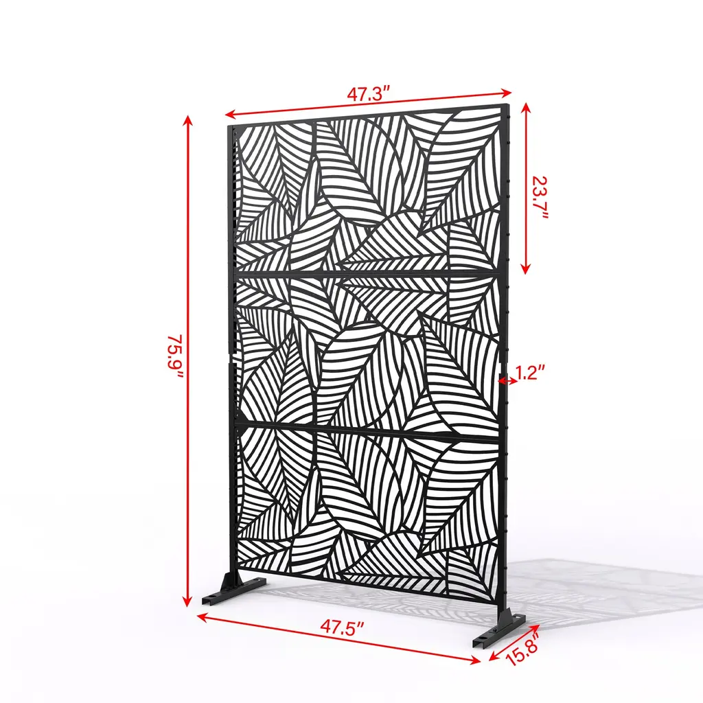 75'' X 47'' Privacy Metal Screen Fence Panel Leaf Blade Pattern - 001-Blade - Black