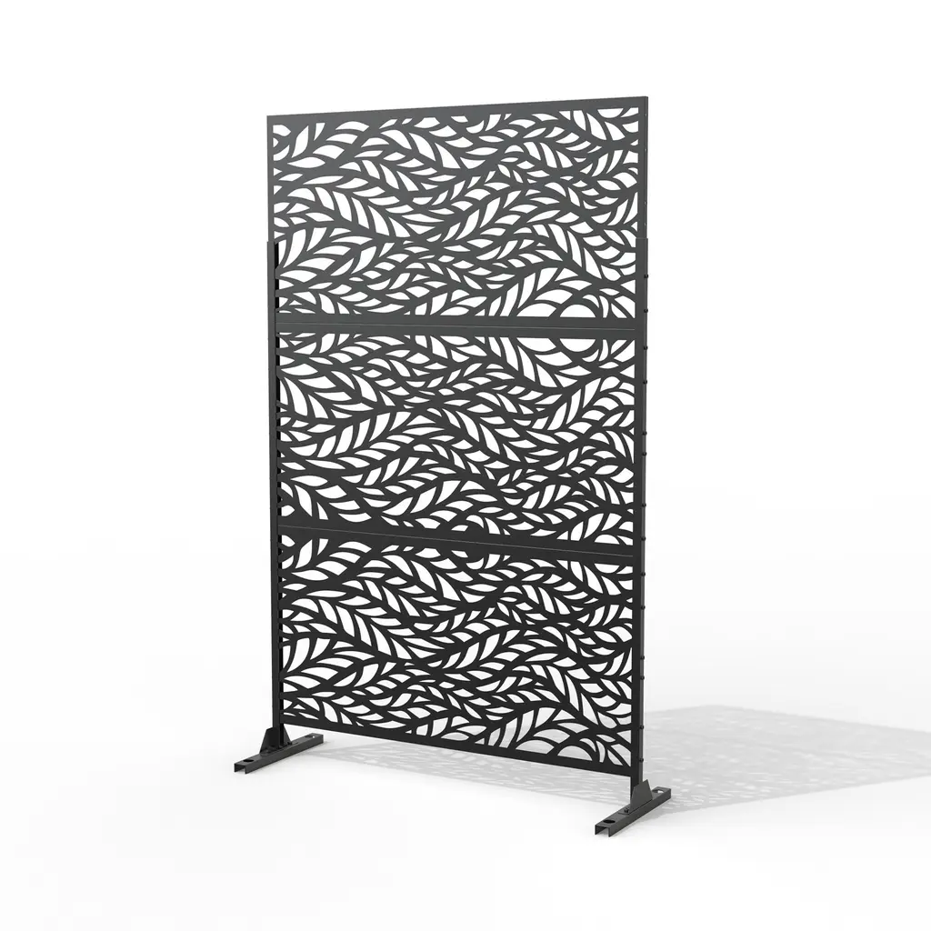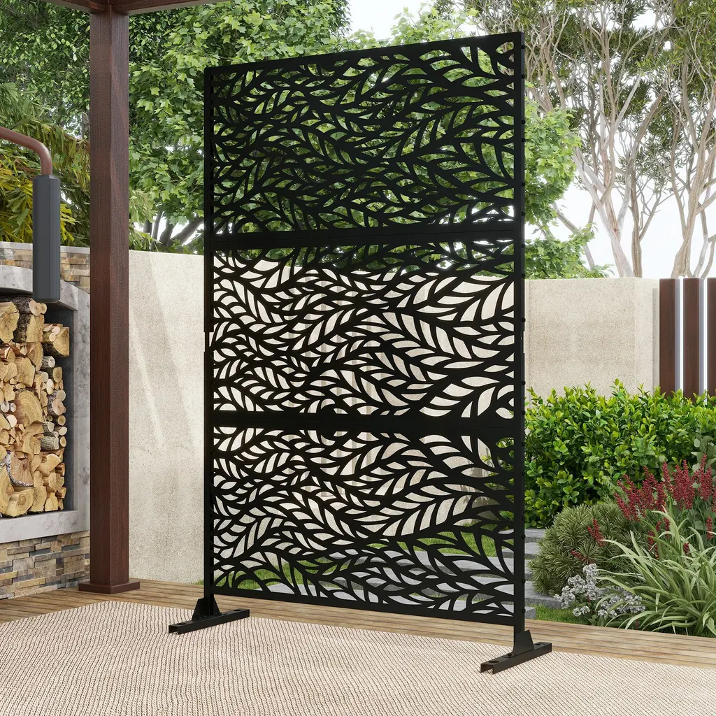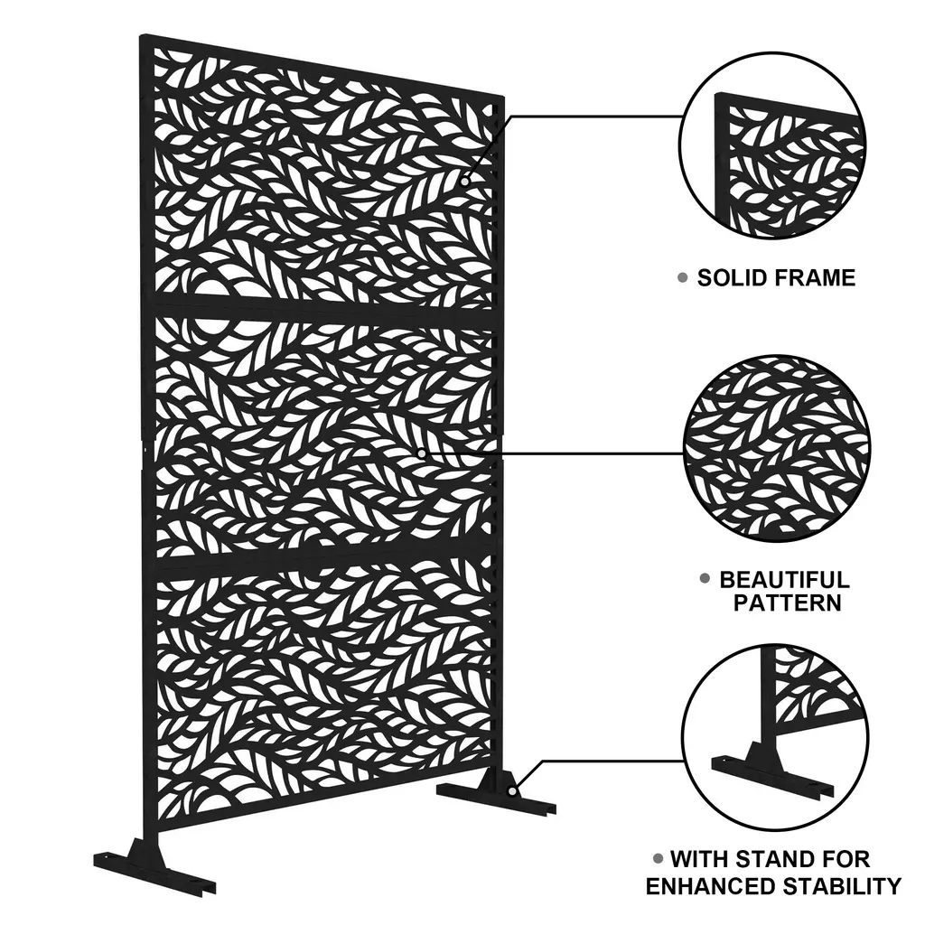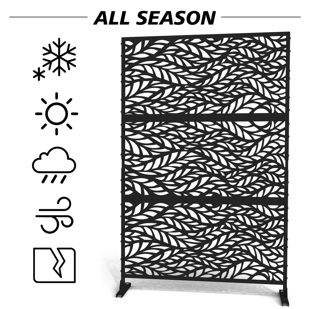 Transform your indoor and outdoor areas with this elegant galvanized steel privacy screen. Crafted from durable, weather-resistant galvanized steel, this screen is built to withstand all seasons while adding an artistic touch to your space. Featuring intricate laser-cut patterns, it serves as both a functional privacy divider and a stunning decorative piece. Whether you're creating a cozy corner on your patio, adding charm to your garden, or enhancing your balcony, this versatile screen fits seamlessly into any setting. It can be mounted on the wall or installed on the ground, allowing you to freely design your space with creativity and style. With its rust-resistant finish and sturdy construction, this privacy screen ensures long-lasting beauty and functionality, making it the perfect choice for adding elegance and seclusion to your living space. Specifications: Model-001: 35.8 lbs Model-007: 47.96 lbs Model-011: 66.88 lbs Features:Package Includes: