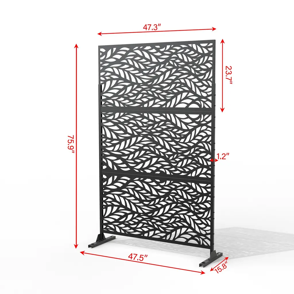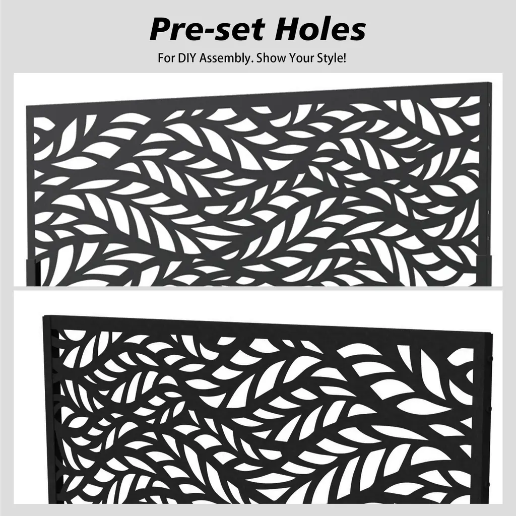 75'' X 47'' Privacy Metal Screen Fence Panel Leaf Blade Pattern - 007-Leaves - Black