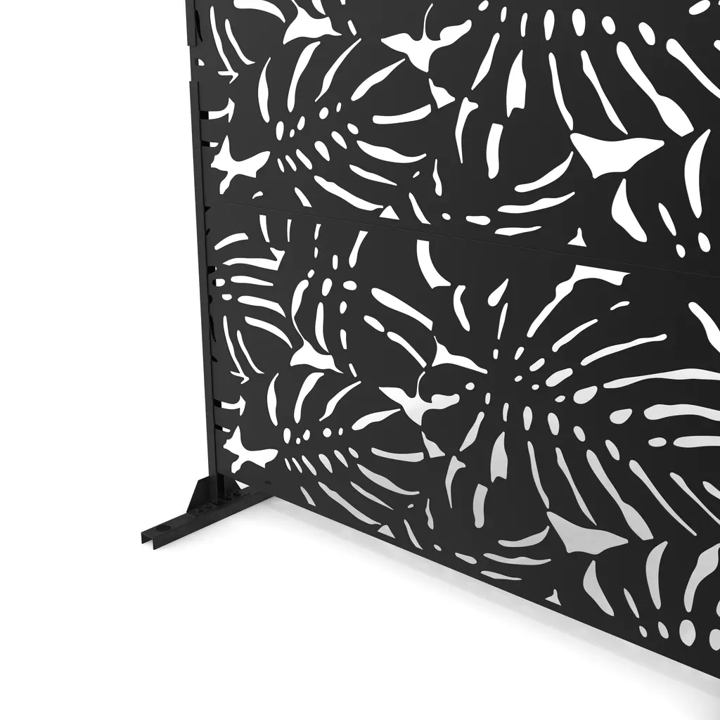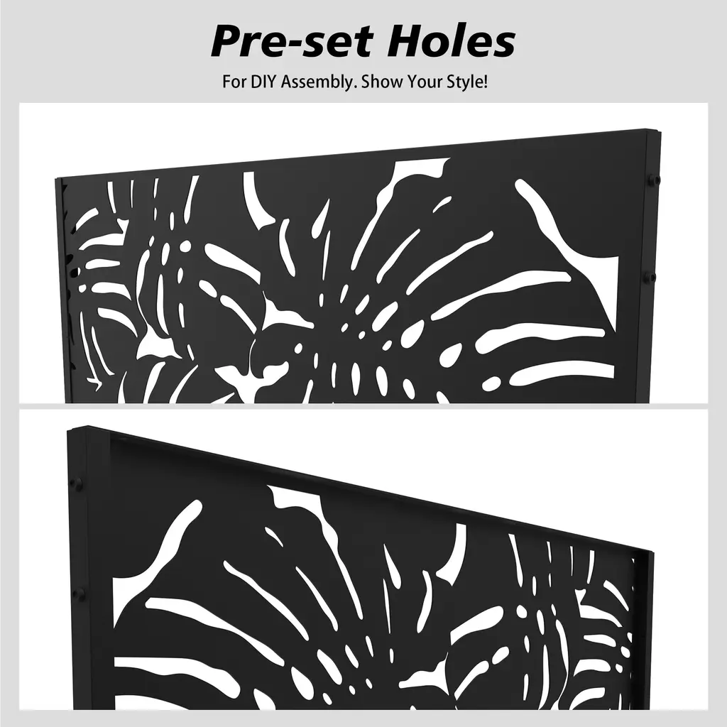 75'' X 47'' Privacy Metal Screen Fence Panel Leaf Blade Pattern - 011-Large Leaves - Black