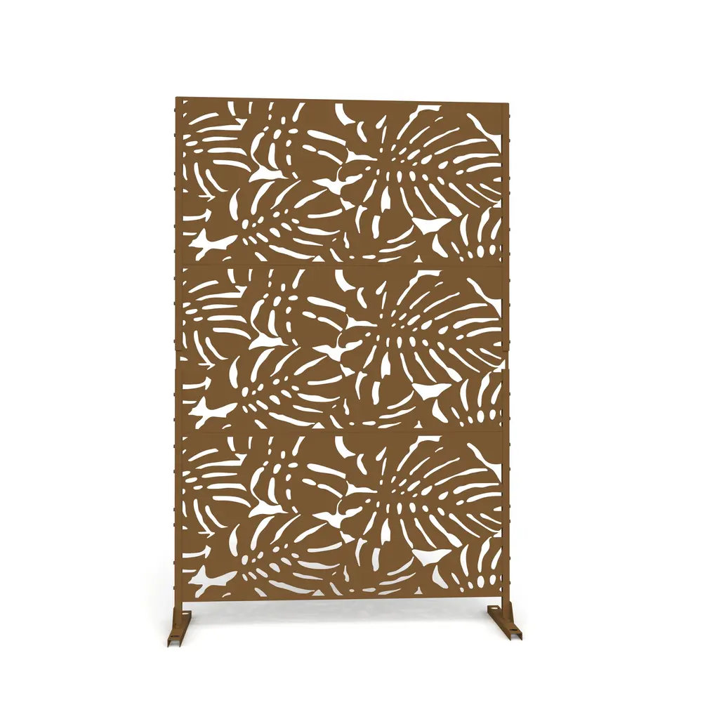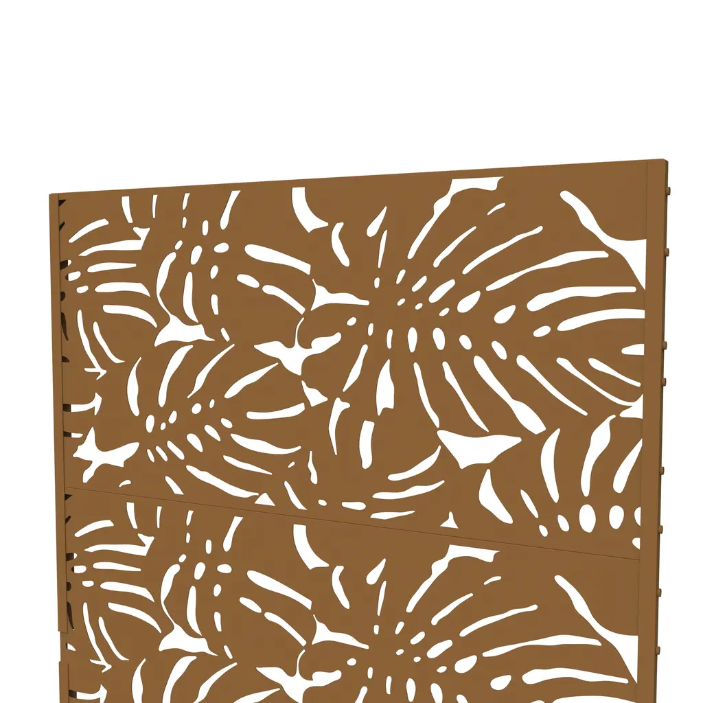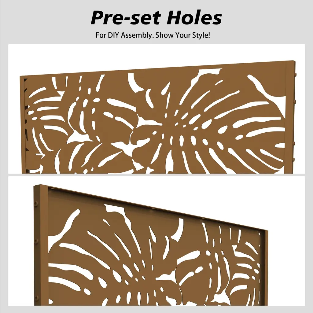 75'' X 47'' Privacy Metal Screen Fence Panel Leaf Blade Pattern - 011-Large Leaves - Brown