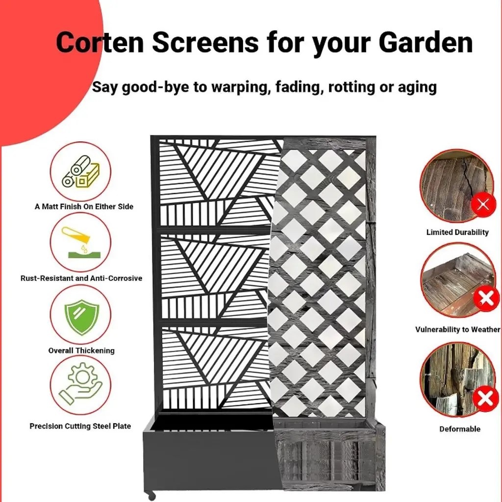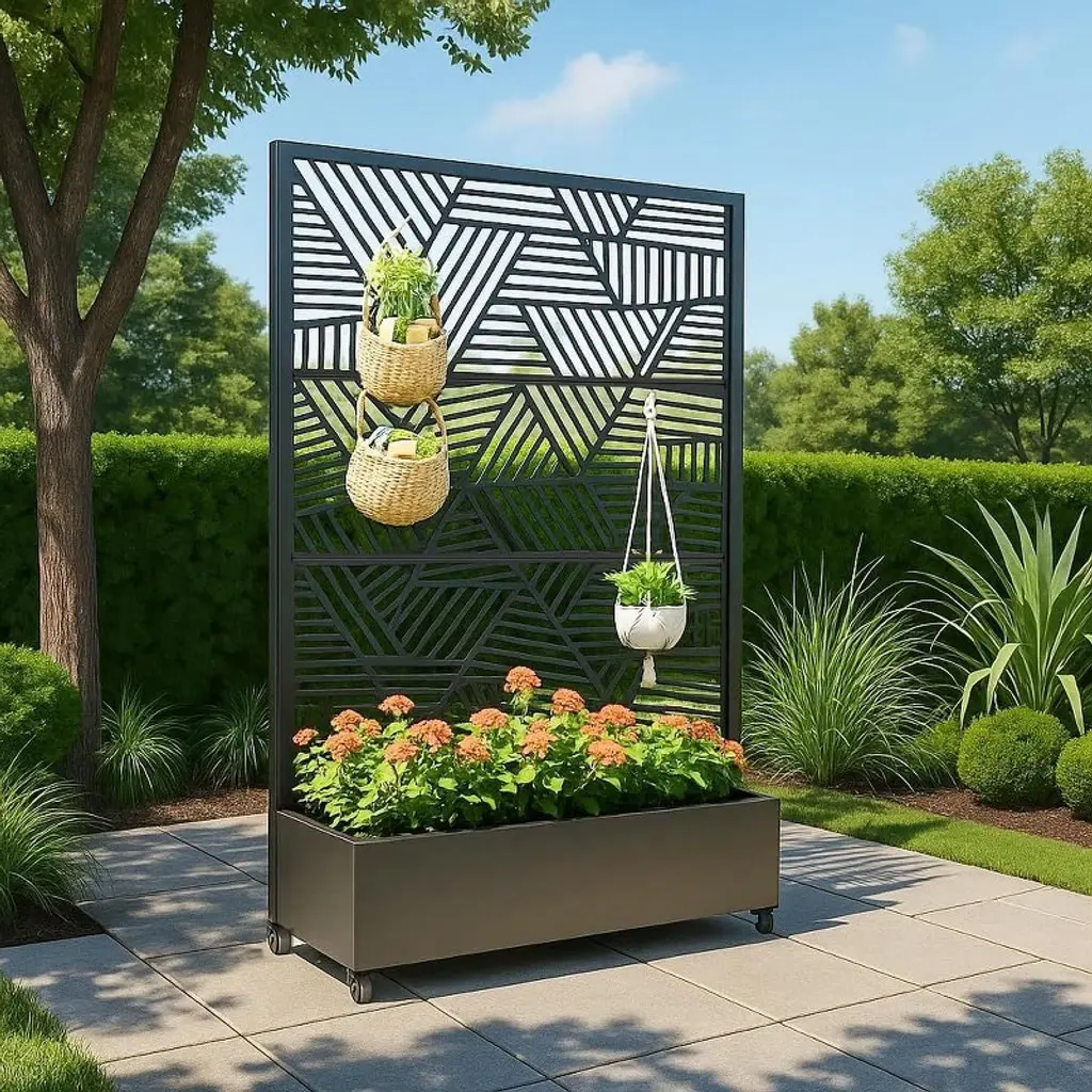The Acekool Privacy Screen combines plant support with outdoor decor. The three-panel design creates privacy while supporting climbing plants. Includes an integrated planter box for flowers or vines. Features decorative leaf patterns and drainage holes. Panels adjust for different layout needs. Works well for patios, poolsides, or garden areas. Measures 72" tall x 47" wide with 12" deep planter.
