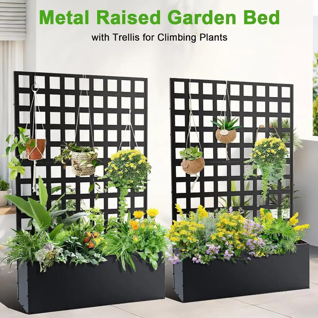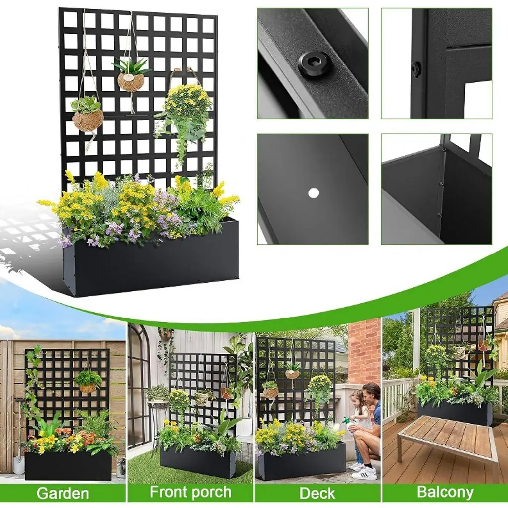 The Acekool Planter Box combines gardening function with vertical plant support. The built-in trellis helps climbing plants grow while creating privacy. Mobile wheels allow easy repositioning in your outdoor space. Features include drainage holes and a deep planting area. The stable base supports healthy root growth. This planter works well for vines, flowers, or small vegetables. Measures 73" long x 47" wide x 12-47" tall (with trellis).
