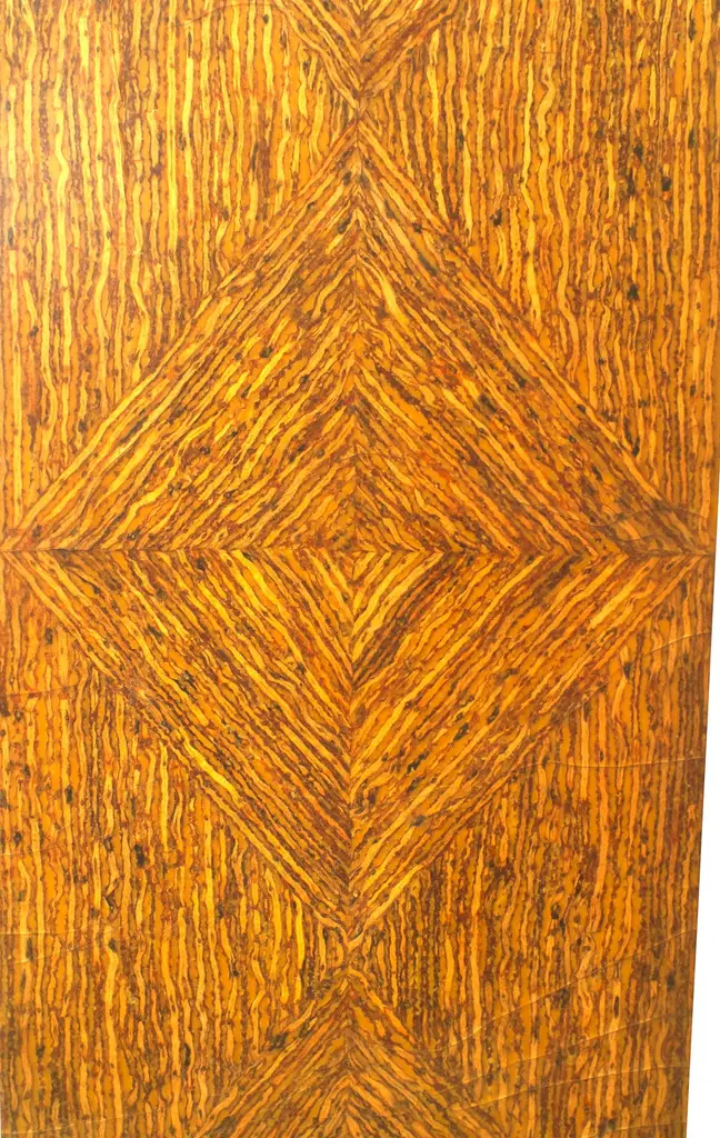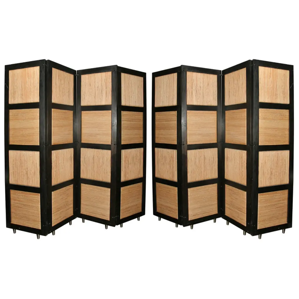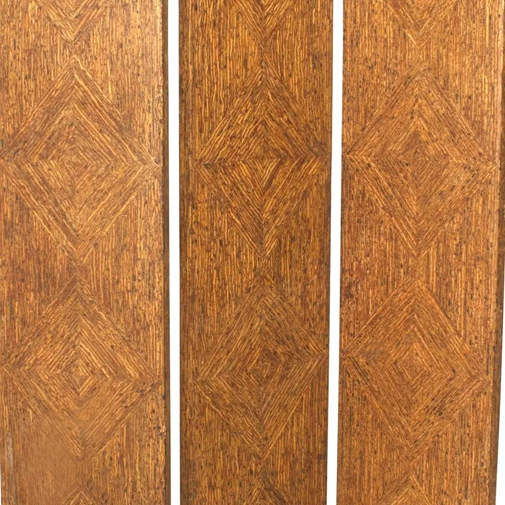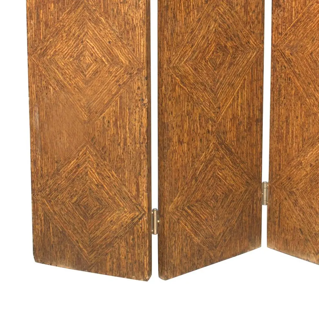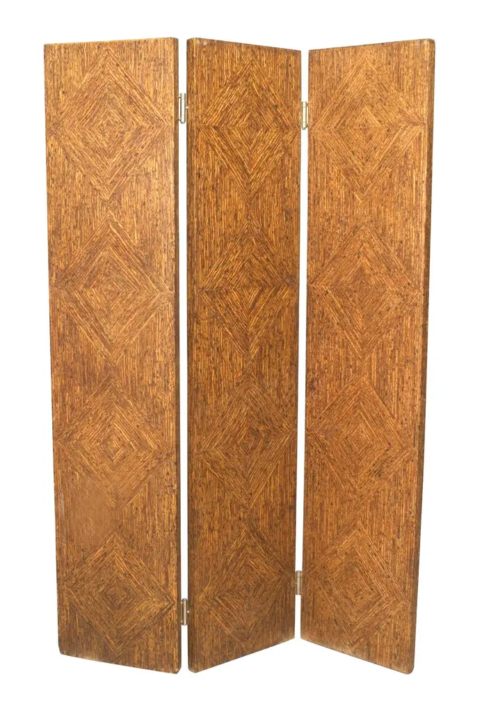 2 American Art Moderne (1940s) rust painted faux woven rush 3 fold screens with diamond design (PRICED EACH).