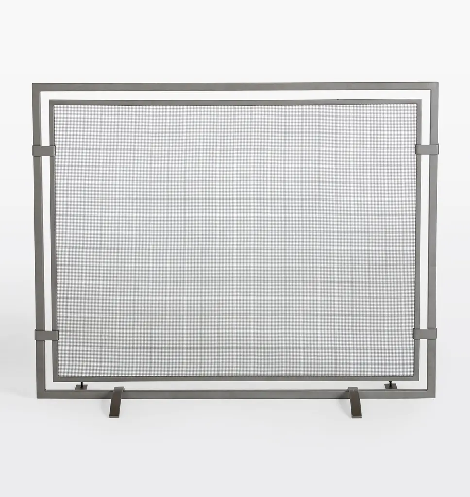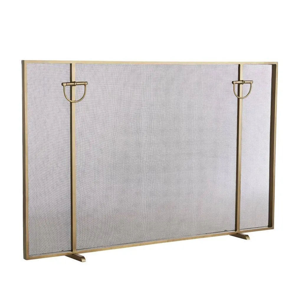 Warm up next to a freshly lit fire while stylishly keeping your space safe. Clean lines frame this antique brass iron screen and exposed decorative rivets recall a horse bridle—delivering a slight equestrian feel to the room it occupies. Its simple yet sophisticated design effortlessly functions in both traditional and modern settings. Also available in Bronze (4756). Screens may tarnish when exposed to high heat.