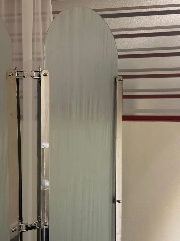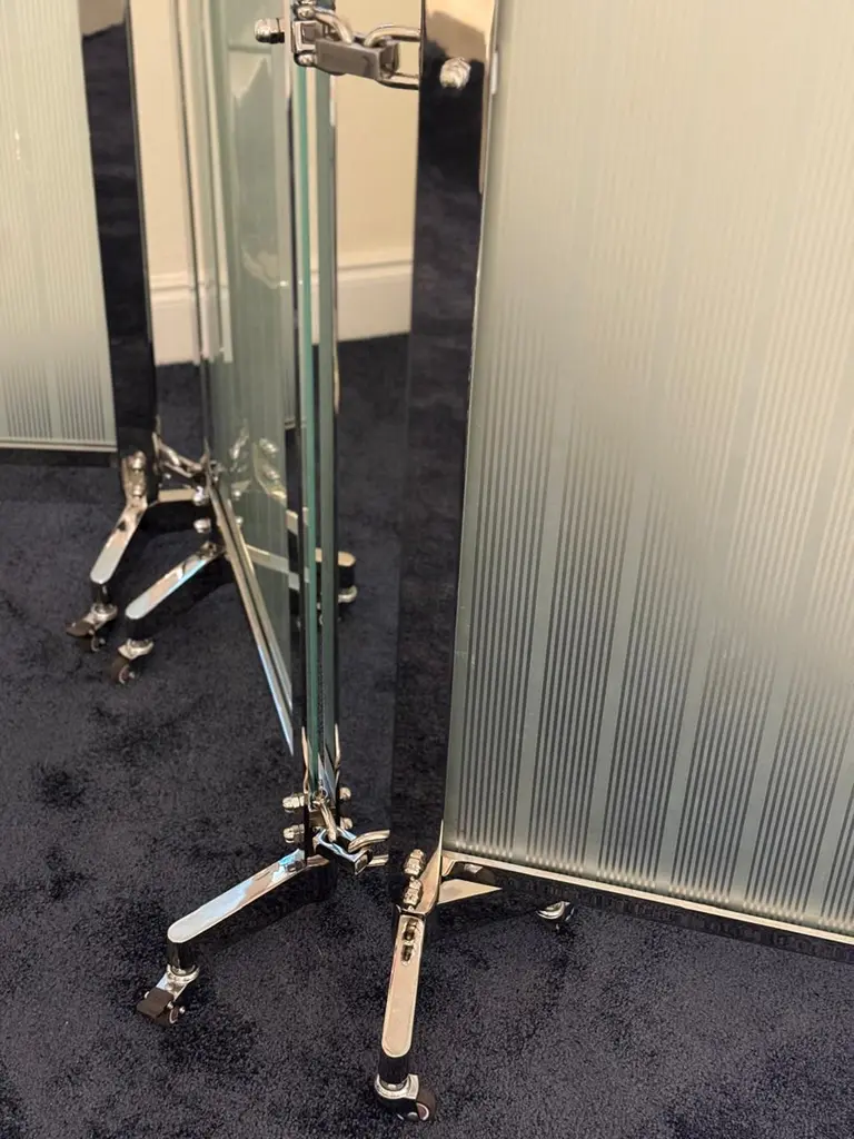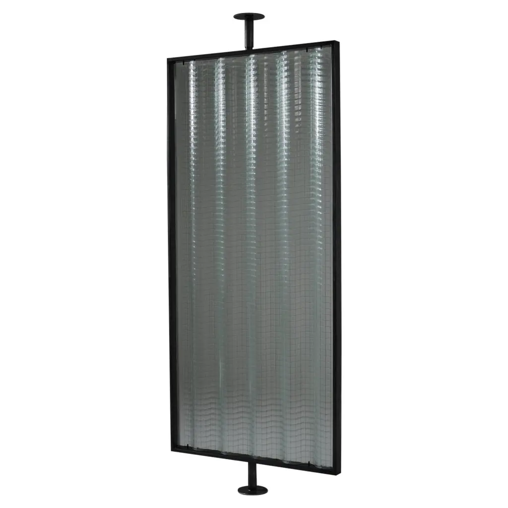 Screens are objects that command a powerful presence within a room. They assert their character from the moment they are seen from a distance. This particular screen is a bold, formidable weapon—crafted in stainless steel.