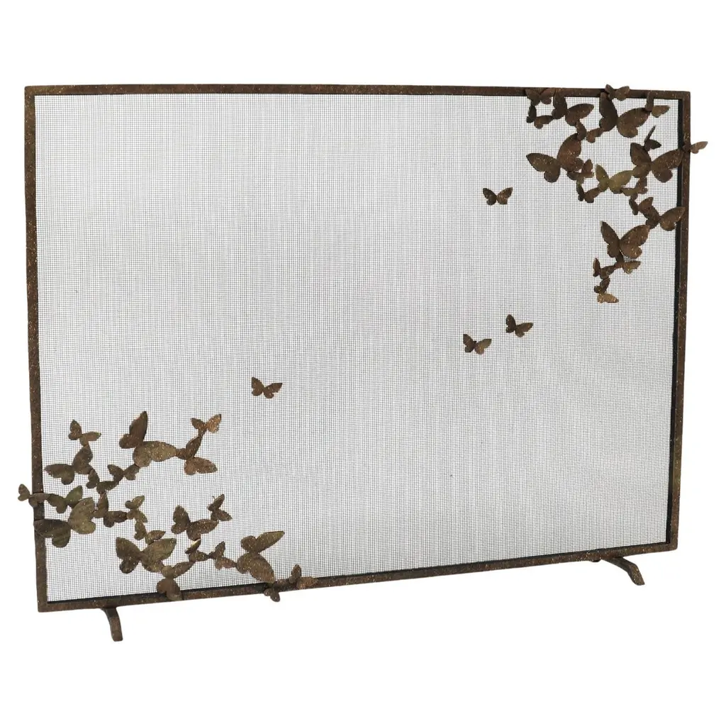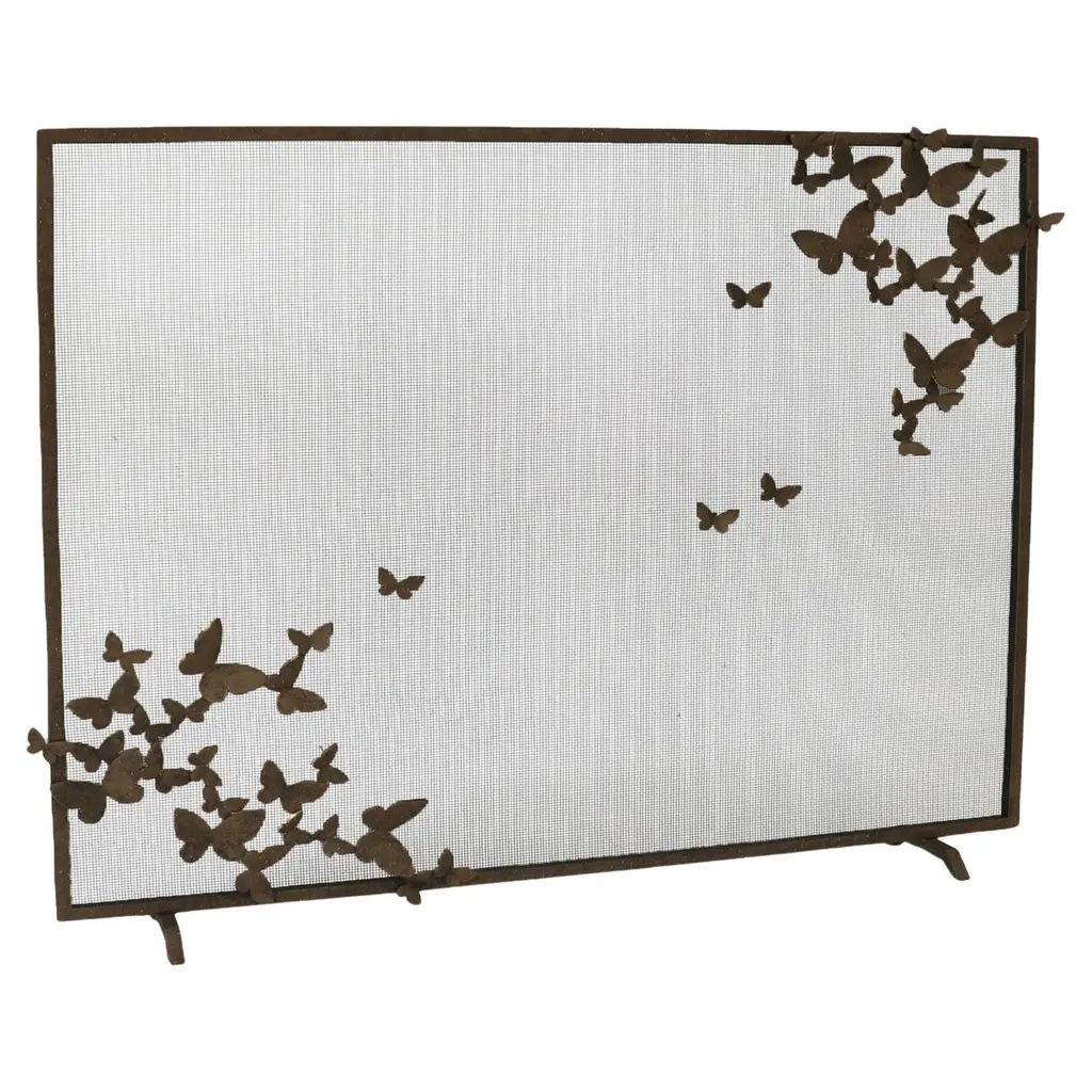 The butterfly fireplace screen combines movement, grace, and charm. Each butterfly is formed with individual, hand bent iron wings. This dramatic butterfly fireplace screen adds a warm and romantic touch to any room. Its individual, hand bent iron wings move with the flames, creating an effect that is both mesmerizing and enchanting. The beautiful butterfly fireplace screen will add a bit of magic to your hearth. The screen is made of hand-forged iron, with individual butterflies to give each piece its own unique shape.Every fireplace screen we offer is unique, with slight variations, due to the artisan nature of our handforged and hand-applied finishing process. Handmade of solid iron in the U.S.A, it is available in seven handpainted finishes and ships in 6-8 weeks.