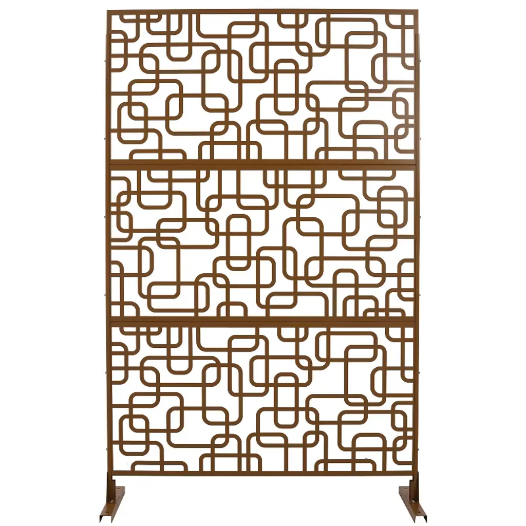 Cavinas Patio Decorative Screen Metal Fence Privacy Screen With Hollow Rectangular Pattern For Outside And Garden, 76" H×48" W, Brown
