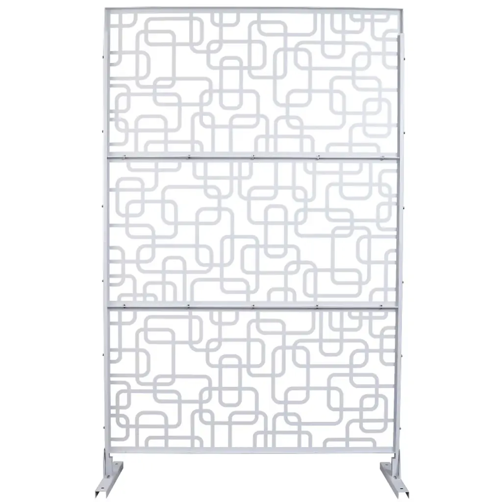 Cavinas Patio Decorative Screen Metal Fence Privacy Screen With Hollow Rectangular Pattern For Outside And Garden, 76" H×48" W, White