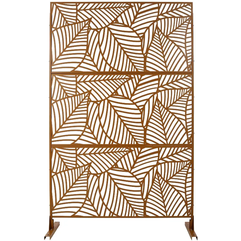 Cavinas Patio Decorative Screen Metal Fence Privacy Screen With Leaf Pattern For Outside And Garden, 76" H×48" W, Brown