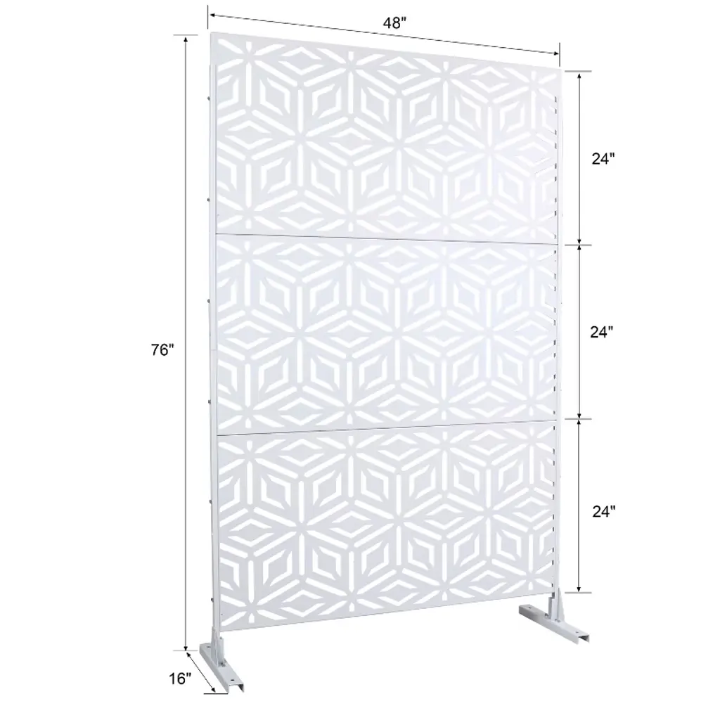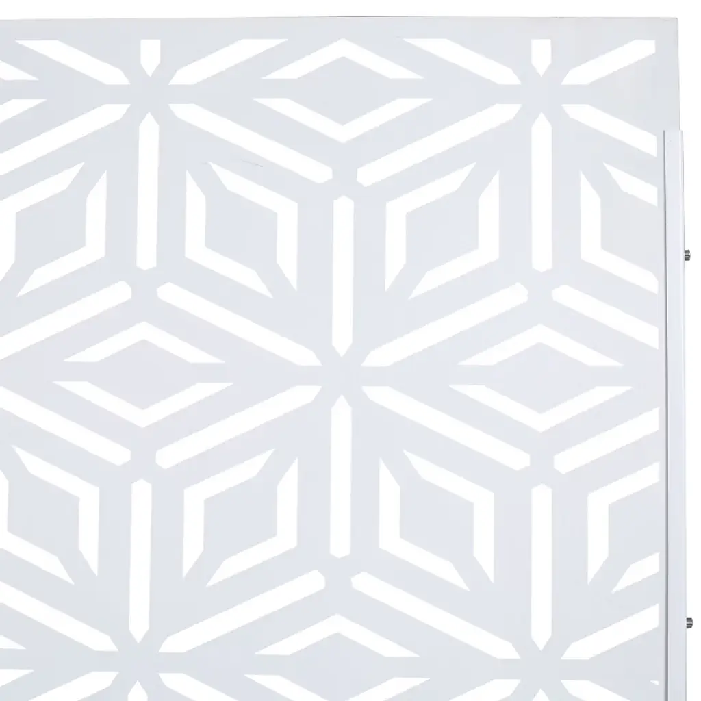 Cavinas Patio Decorative Screen Metal Fence Privacy Screen With Rhombus Pattern For Outside And Garden, 76" H×48" W, White