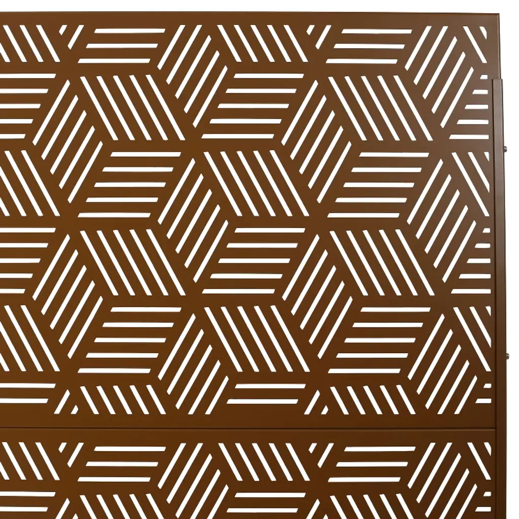 Cavinas Patio Decorative Screen Metal Fence Privacy Screen With Striped Rhombus Pattern For Outside And Garden, 76" H×48" W, Brown