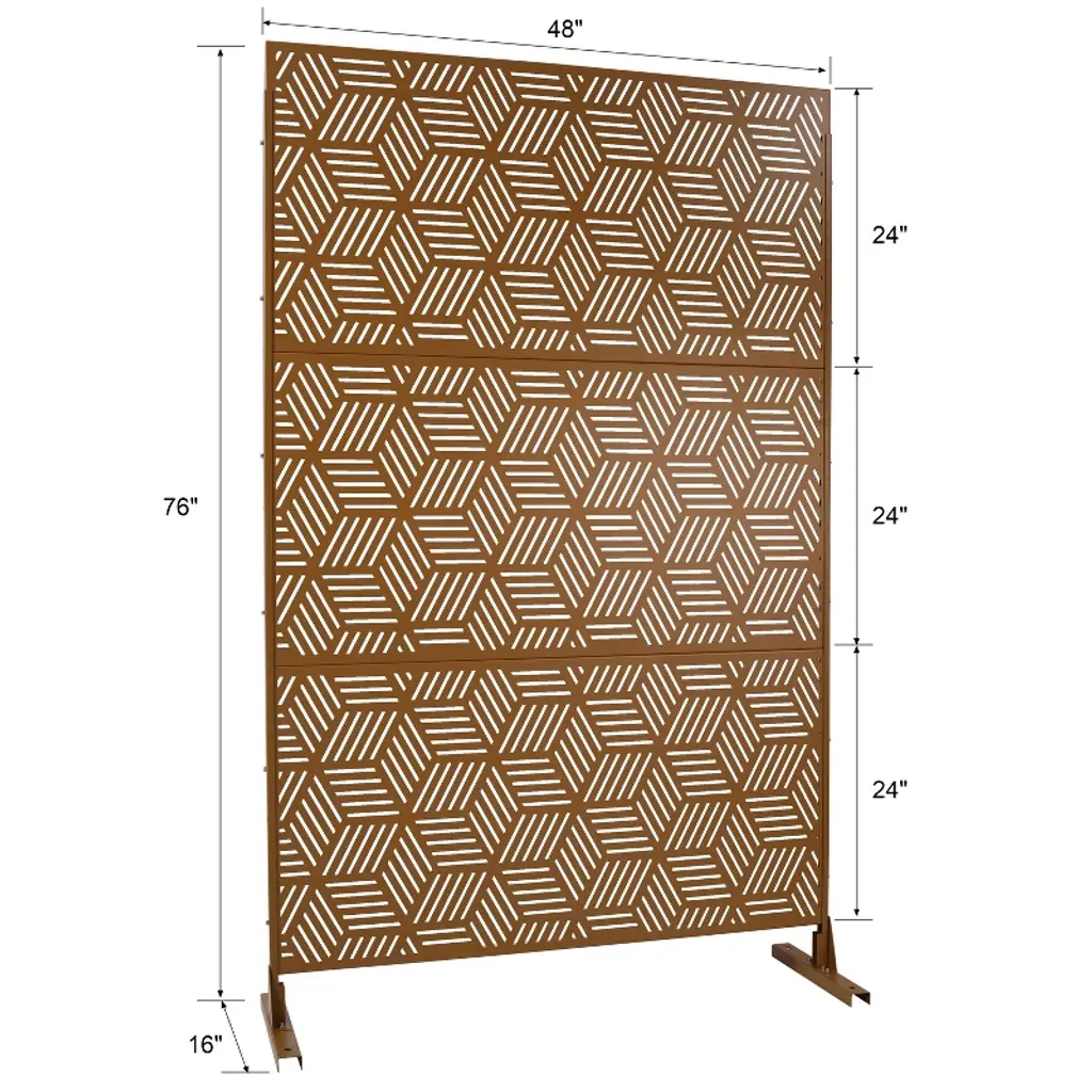 Whether used as an elegant indoor room divider or a stylish outdoor privacy solution, this decorative patio privacy screen has timeless appeal and long-lasting performance.They are made from high-quality materials to withstand the elements while maintaining their sophisticated appearance.Available in versatile, beautiful patterns, these screens not only create privacy but also transform your space into a sophisticated retreat.