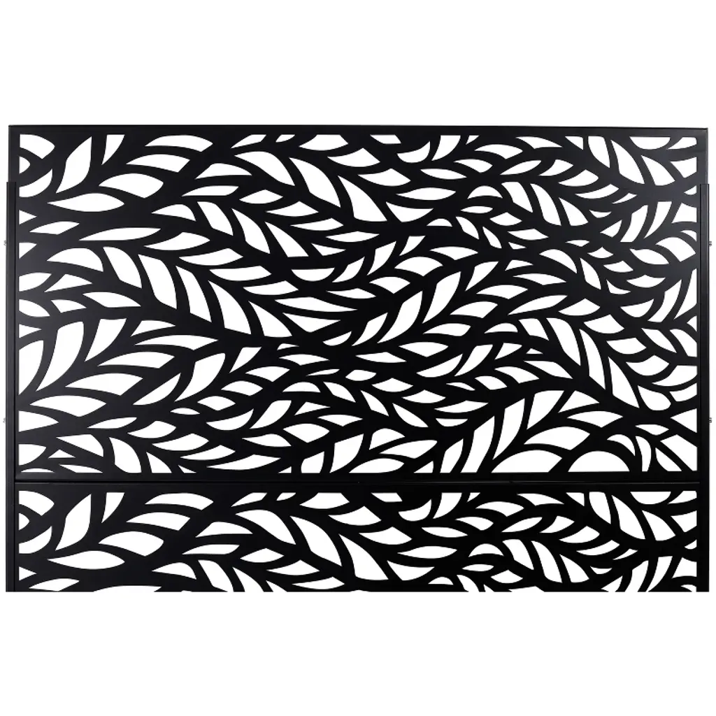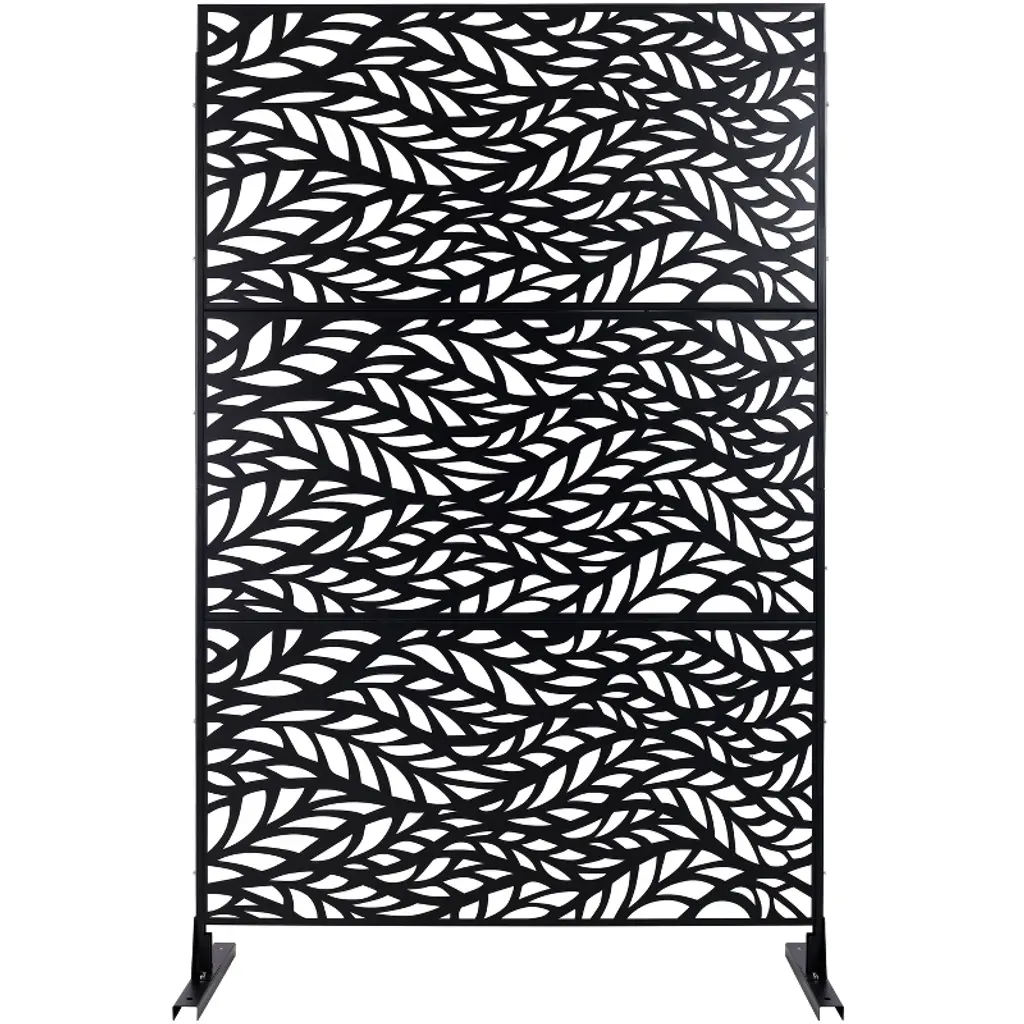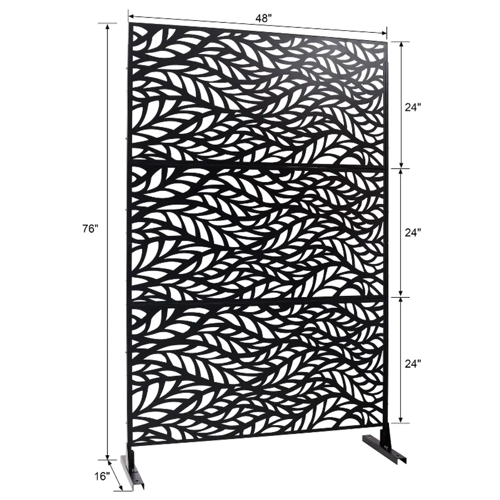 Cavinas Patio Fence Privacy Screen Modern Metal Fence Panels With Leaf Pattern For Outdoor Decor, 76" H×48" W, Black