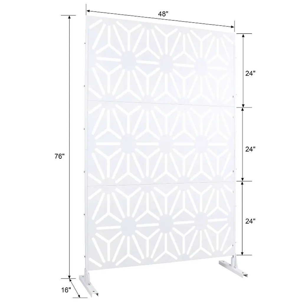 Cavinas Patio Privacy Screen Modern Metal Fence Panels With Geometric Pattern For Garden Decor And Outdoor Decor, 76" H×48" W, White
