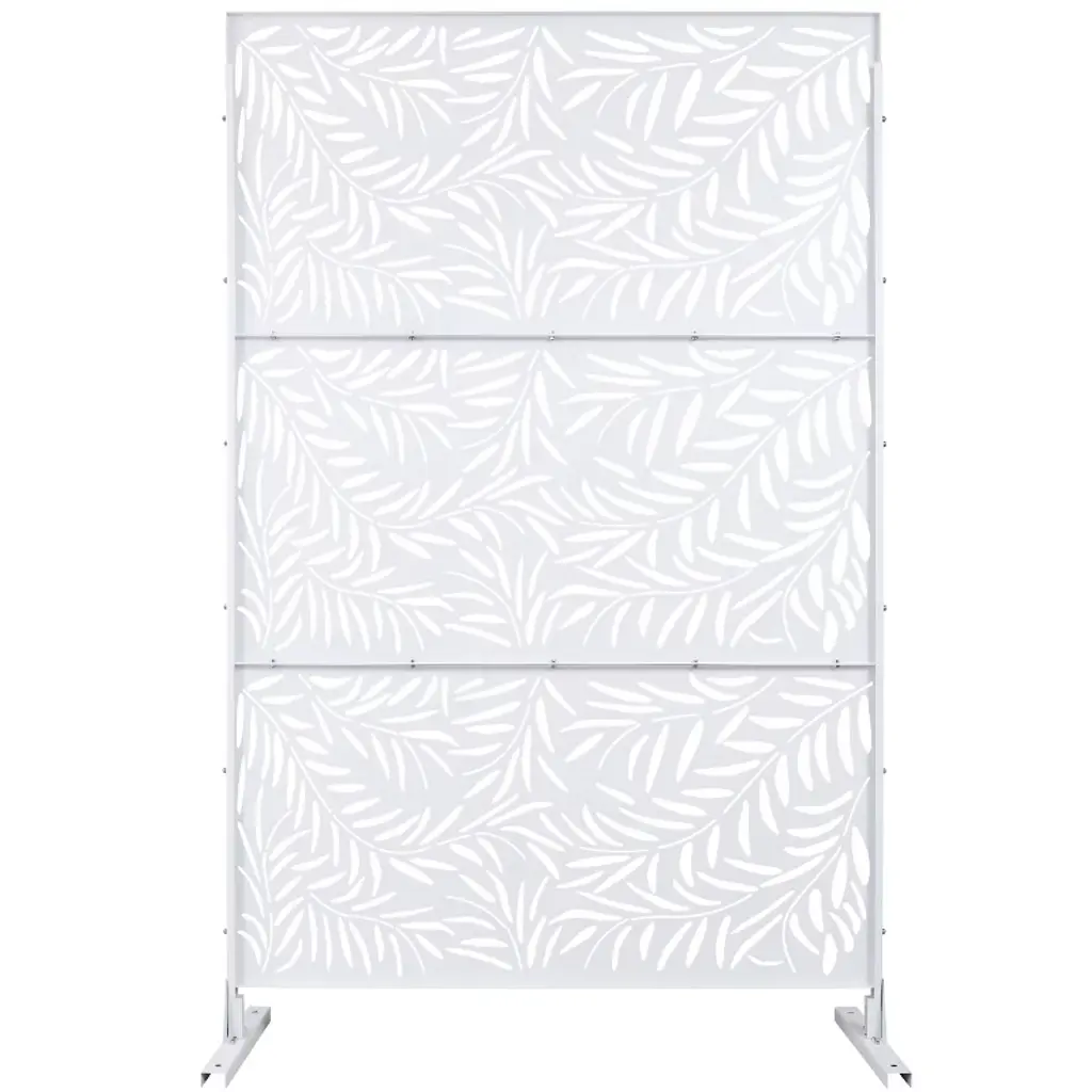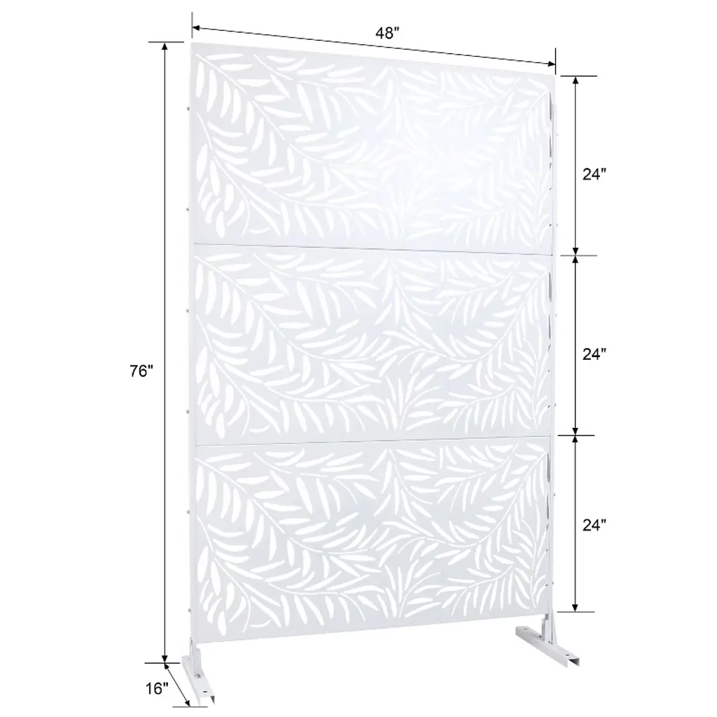Cavinas Patio Privacy Screen Modern Metal Fence Panels With Leaf Pattern For Outdoor Decor, 76" H×48" W, White