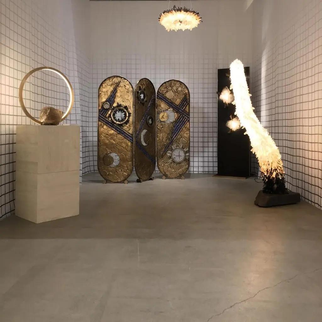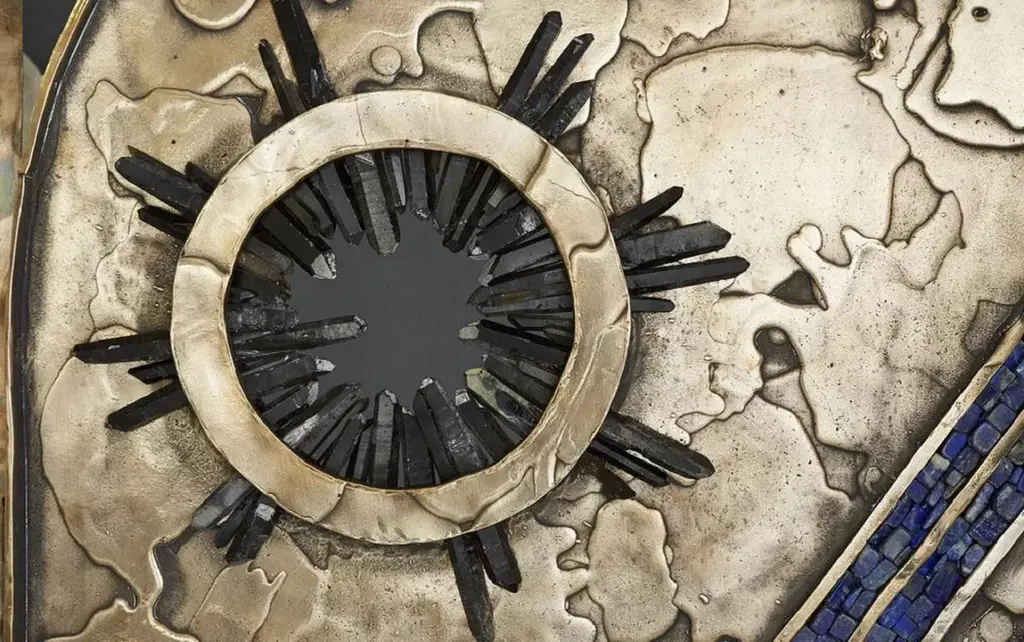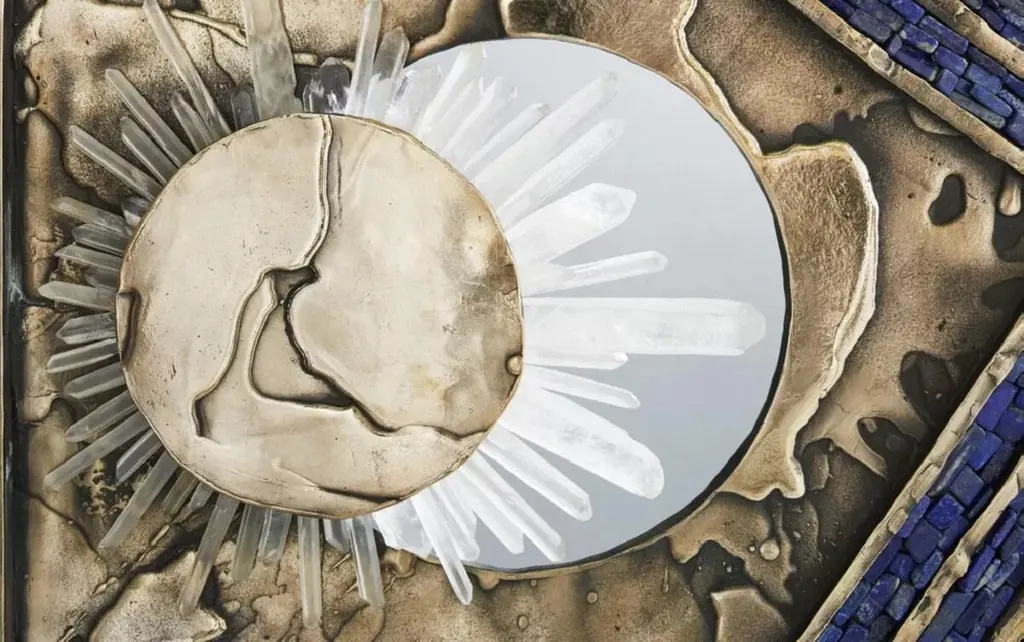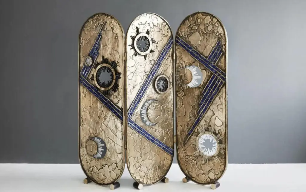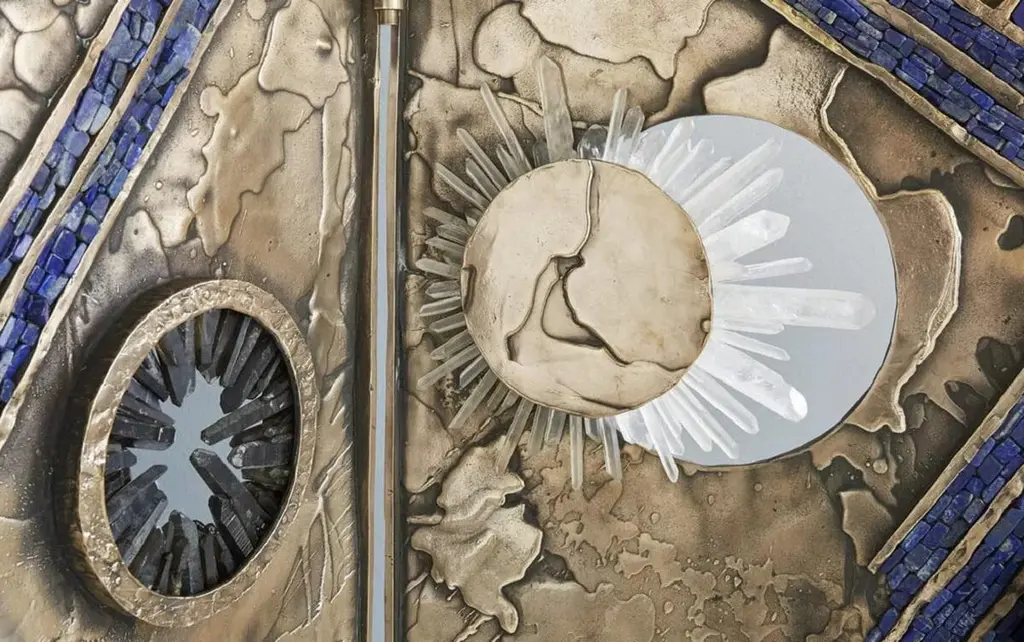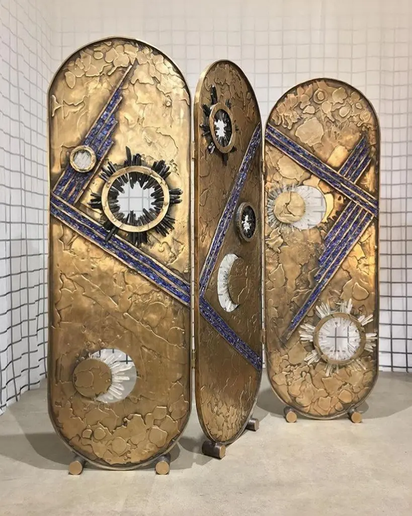 Vanity Screen by Christopher BootsUnique PieceDimensions: D 6 x W 180 x H 170 cm.Materials: Cast bronze, clear quartz, smoky quartz, lapis lazuli.Unique piece in a series of 8 limited edition pieces.Christopher Boots's creation, VANITY SCREEN, was a project of love that required four years to realize.First presented at Collective Design in New York in May 2017, the room divider incorporates clear and smoky quartz crystal and lapis lazuli in contrast to a moon-like surface cast in solid bronze.The celestial screen is the first in a limited edition of eight and the first of its kind in a new direction for the studio, expanding into cast furniture and objects.All our lamps can be wired according to each country. If sold to the USA it will be wired for the USA for instance.The Christopher Boots studio was founded on the principle of “Fiat Lux”: Let there be Light.Established 11-11-11 through metaphysical and material exploration of quartz crystal, the studio gave birth to creating lighting with a signature aesthetic: exploring relationships between nature, architecture, symbology, geometry, and geology, offering contemporary interpretations of structure, symmetry, and pattern.All works are handmade with love and care by a diverse team of skilled artisans. Collaborations with glass blowers, bronze foundries, sculptors, metal smiths, and stone masons ensure a commitment to quality, underscoring an investigative sensibility, giving birth to a series of illuminating collections both alluring and unexpectedly visceral.The studio designs, prototypes, and builds in Melbourne, Australia, honoring traditional elements of form, proportion, and scale, marrying traditional and cutting edge materials with various techniques, creating future collectibles designed for transforming architecture.The work of the studio has been displayed at Hermès, Rossana Orlandi, National Gallery of Victoria, Parliament House, Cassina, amongst countless private collections in New York, Dubai, Tokyo, Moscow, and Paris.Collaborating with architects, interior designers, and private clients fuels the dialogue between worlds we all transverse.