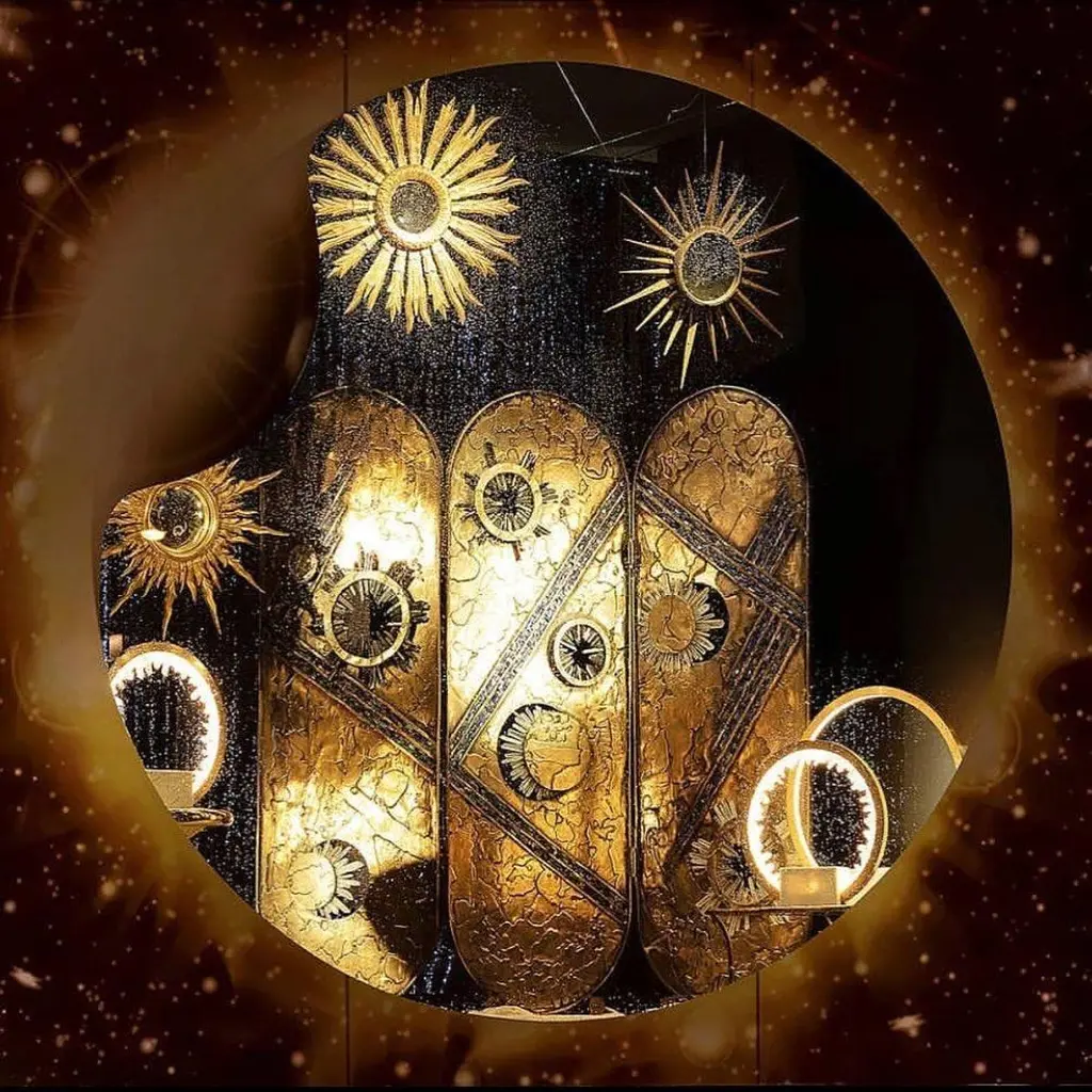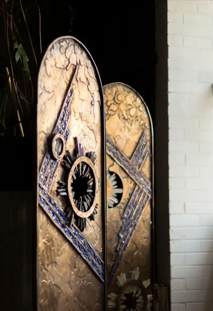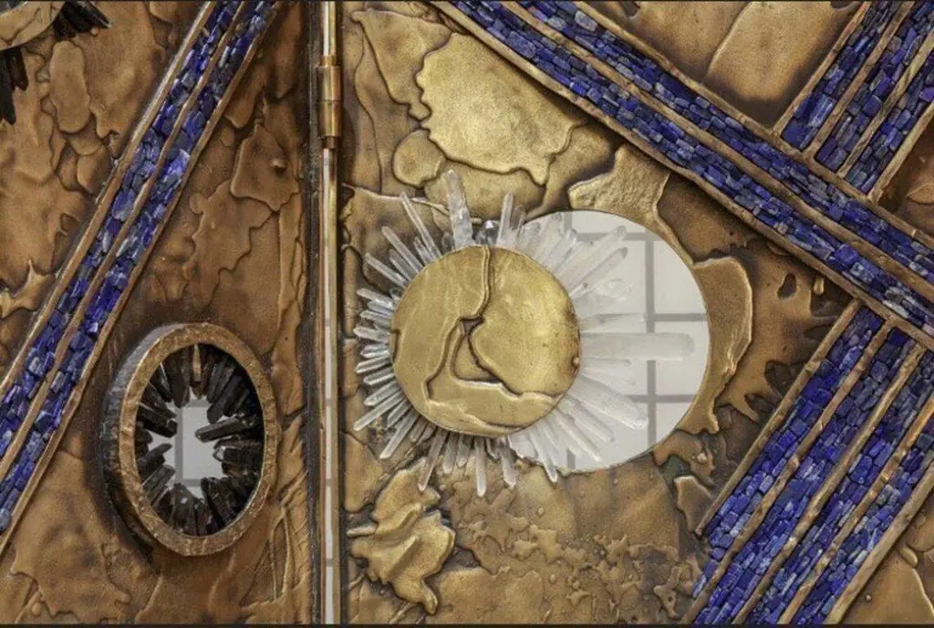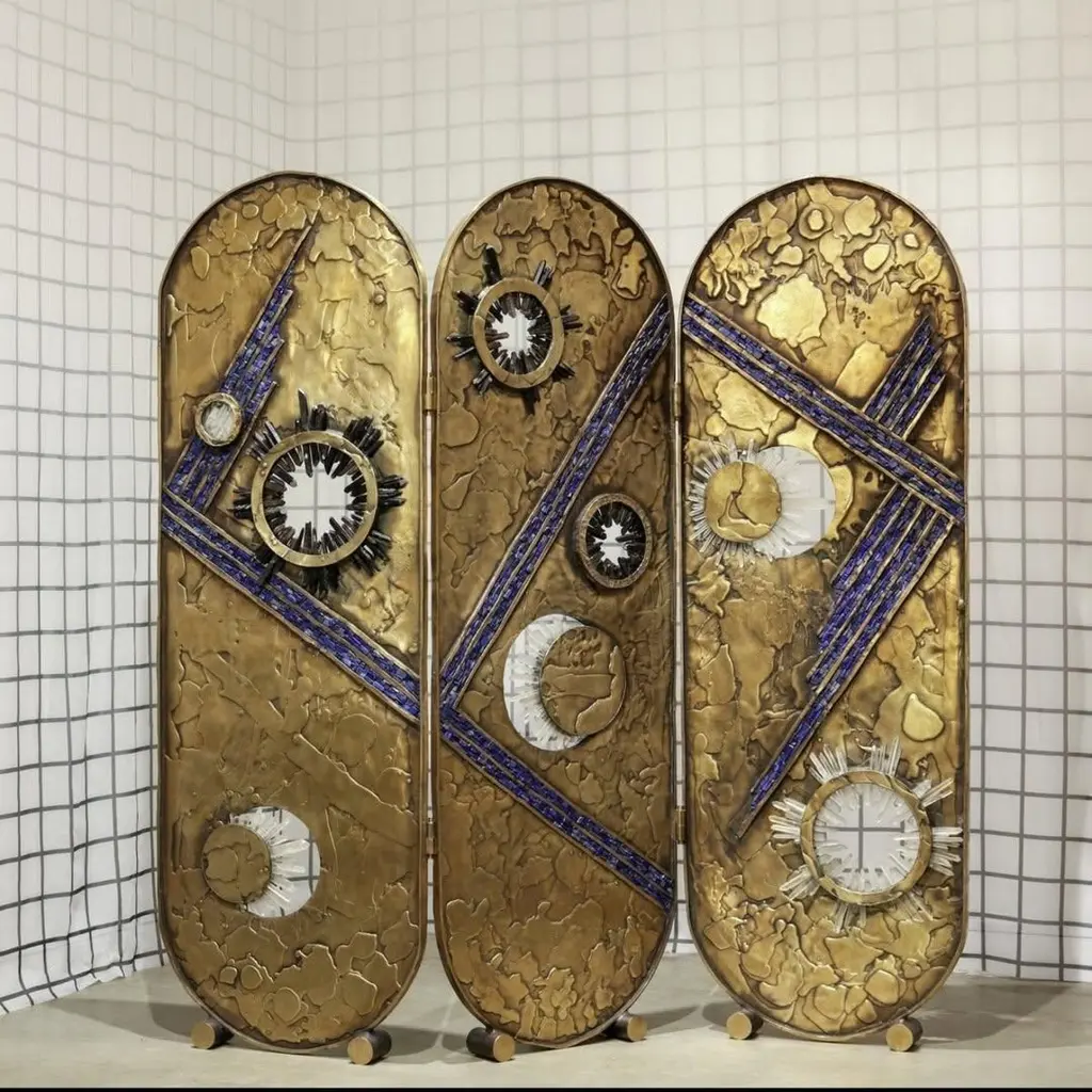 Celestial-Inspired Three Panels Bronze & Crystal Screen By Christopher Boots