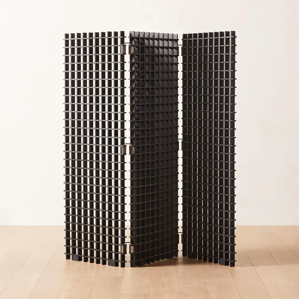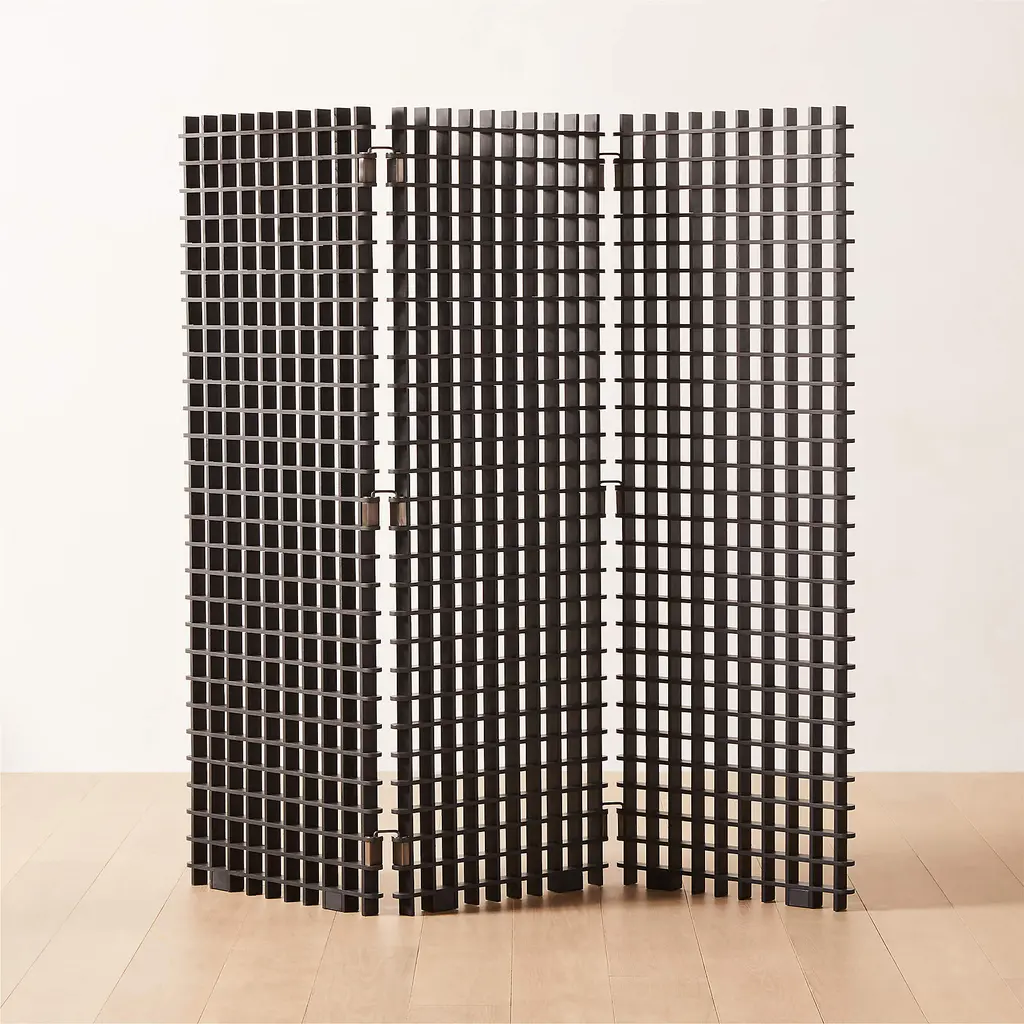 A leap forward in design for its midcentury era, this room divider by Gianfranco Frattini showcases the Italian designer's forward-thinking vision. Like the 1960s original, our version echoes Frattini's interest in Japanese woodworking and his comprehensive vision of space. Crafted of stainless steel and blackened ash wood certified sustainable by the Forest Stewardship Council ®, the adjustable three-panel divider has a commanding presence that relies on use of negative space. A simple grid, in Frattini's hands, becomes a timeless statement piece for the living room or bedroom. CB2 exclusive.