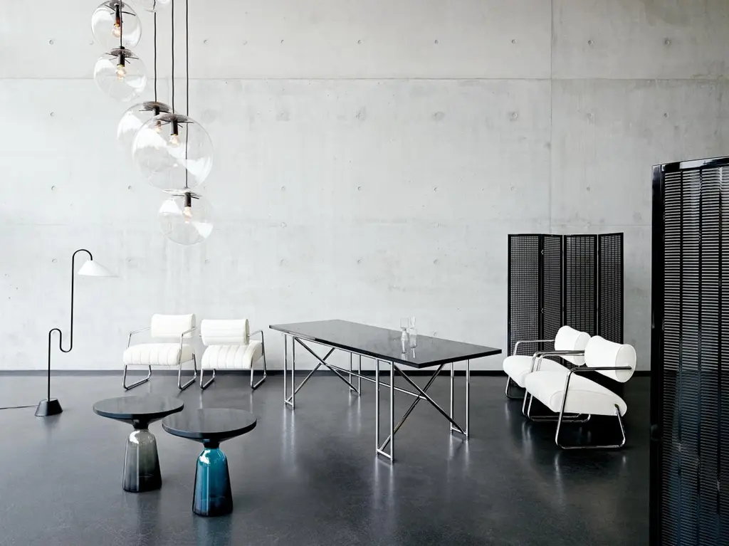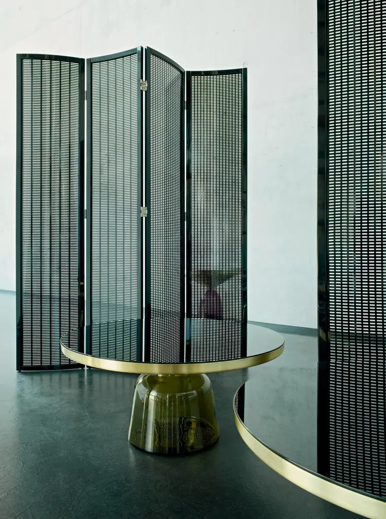 The high-tech look that arose in the 1980s and which is still potentially current had an ingenious predecessor. Over half a century ago, Eileen Gray anticipated the cool Industrial aesthetic of modern technology with the folding screen and her fluorescent lighting fixture Tube Light. Her softly curved, four-leaf folding screen with its perforated metal panels will also survive the stylistic trends of future decades undamaged. Indeed, there are forms upon which no one can improve.Four-piece, foldable screen. Wooden frame with two differing perforated panels. High-gloss lacquer finish. Dimensions: W 143 cm, H 167 cm.Available in:White high-glossChinese red high-gloss.