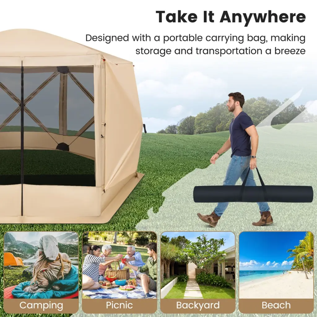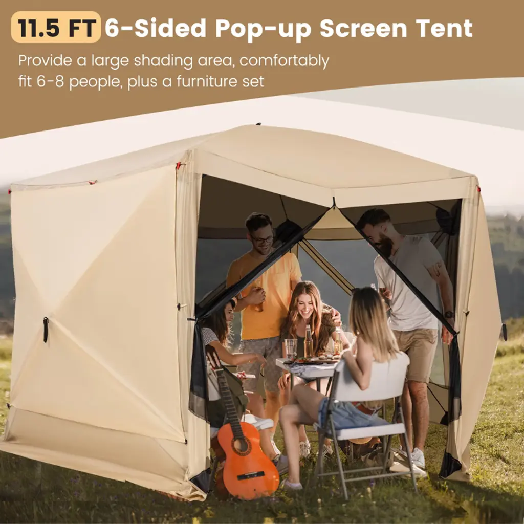 Costway 11.5 X 11.5 Ft 6-sided Pop-up Screen House Tent With 2 Wind Panels For Camping Coffee