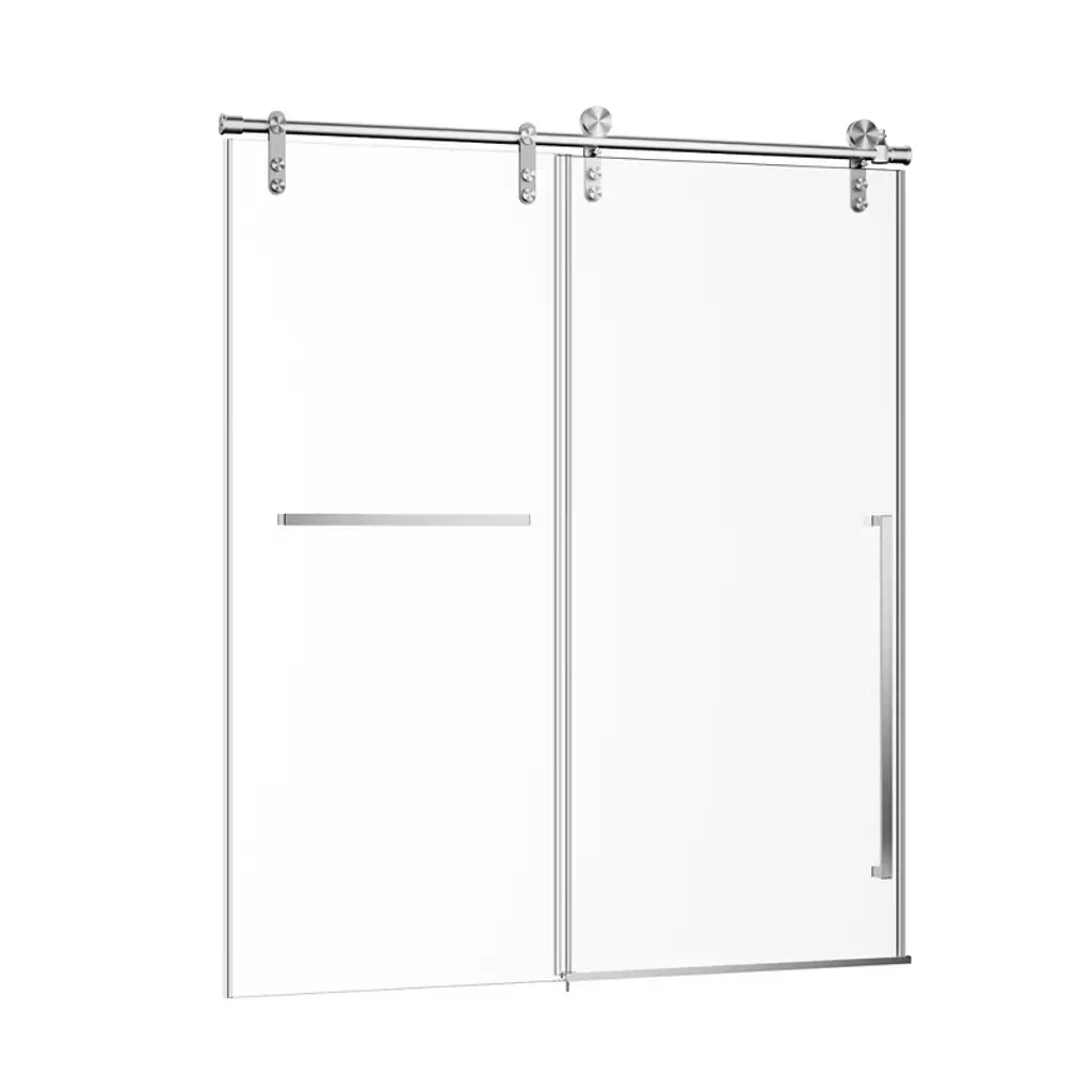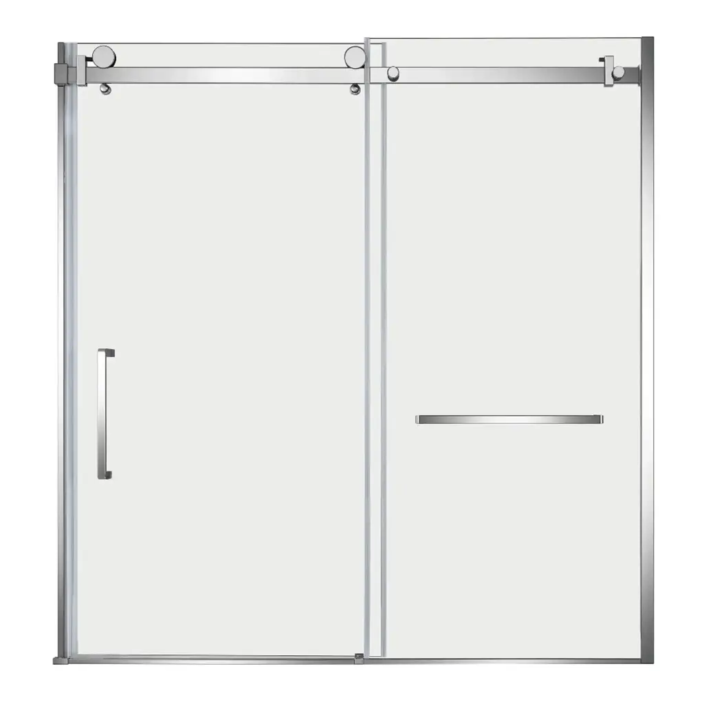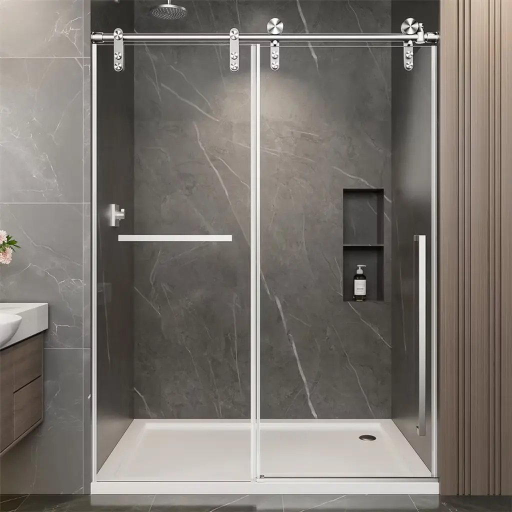 Cowlown Silver Frameless Sliding Shower Door, Adjustable Shower Screen With Tempered Glass