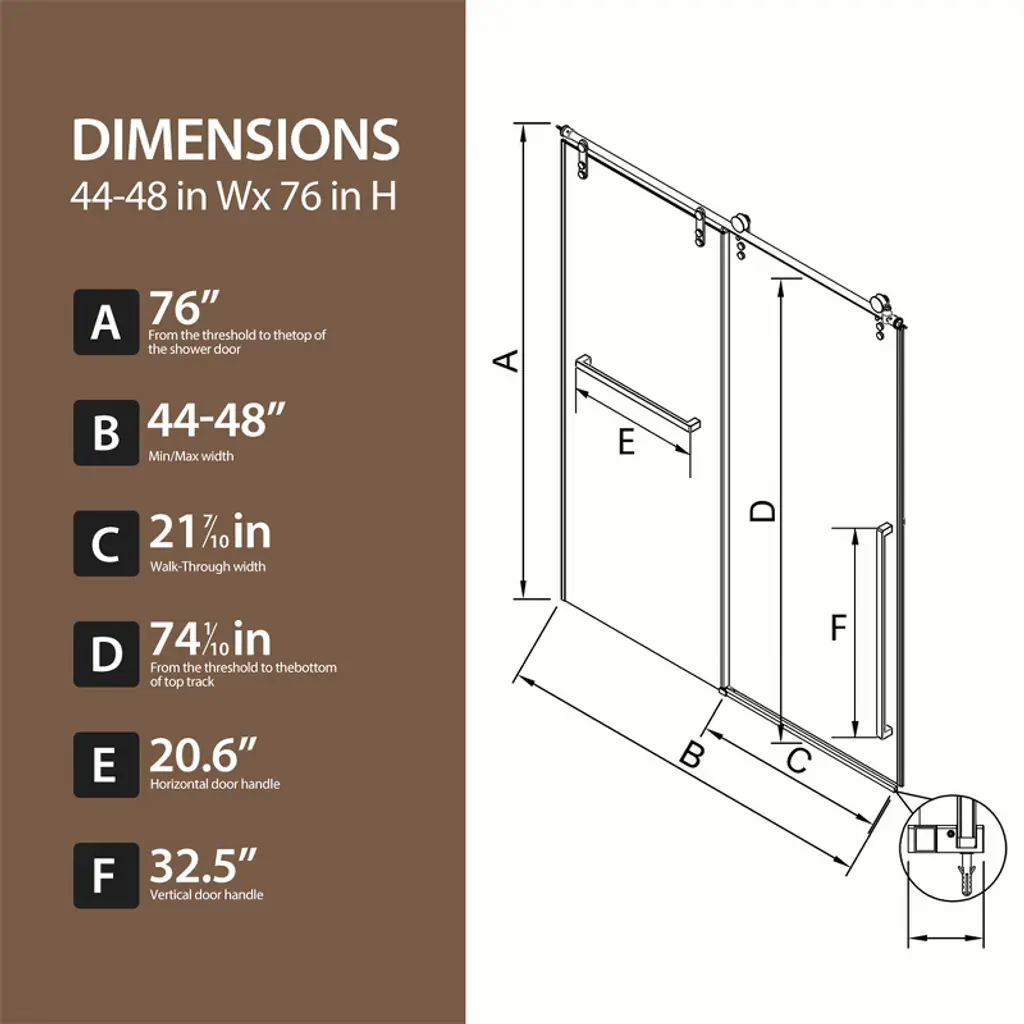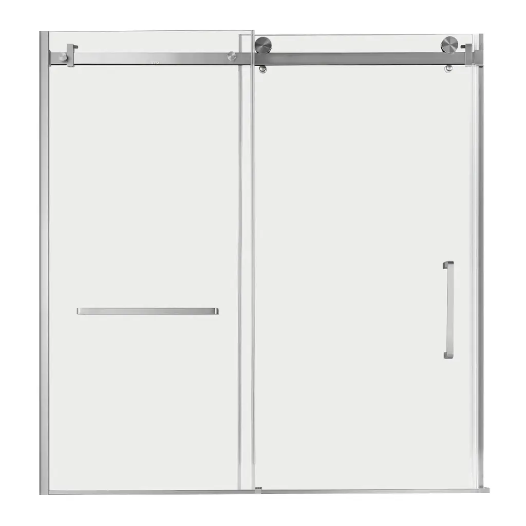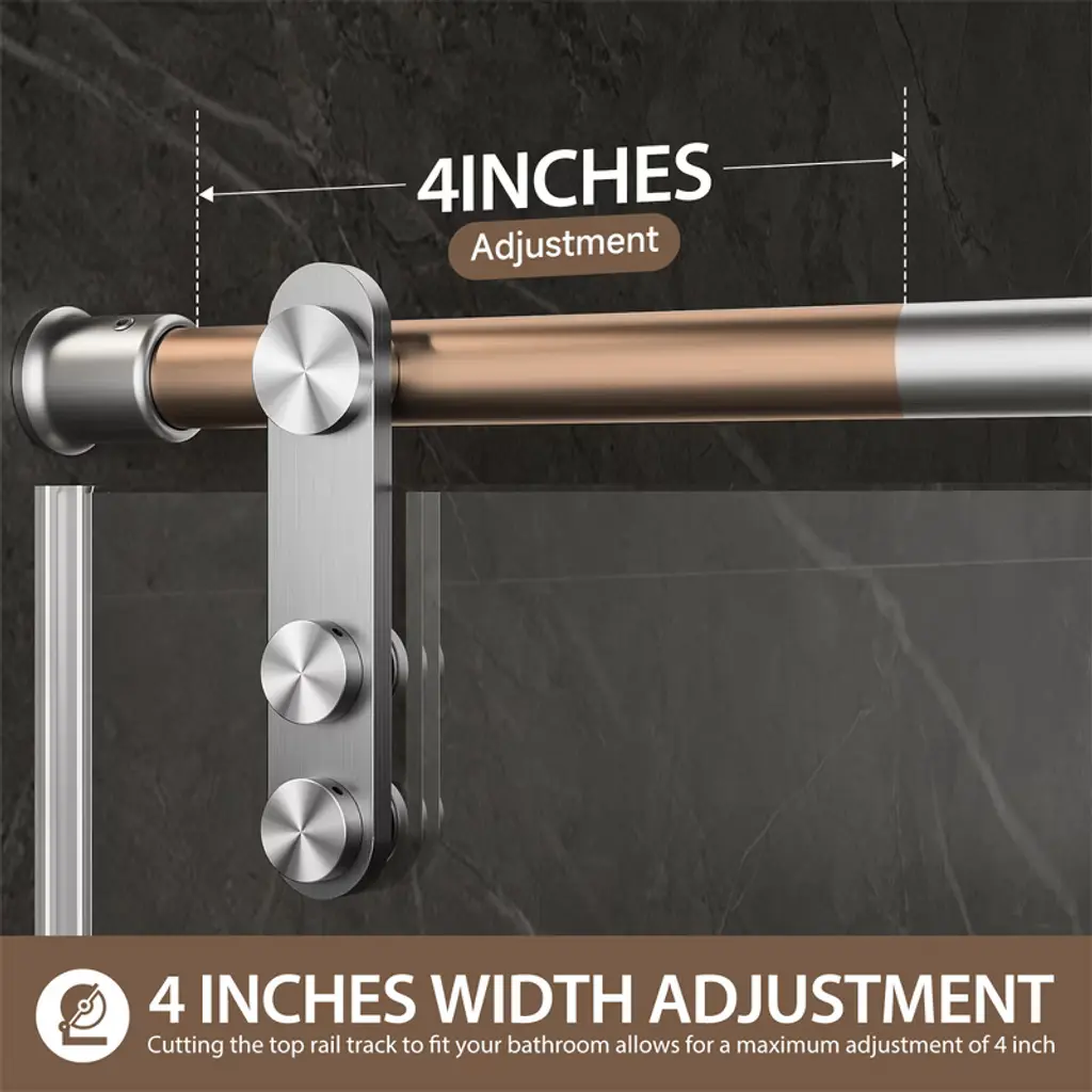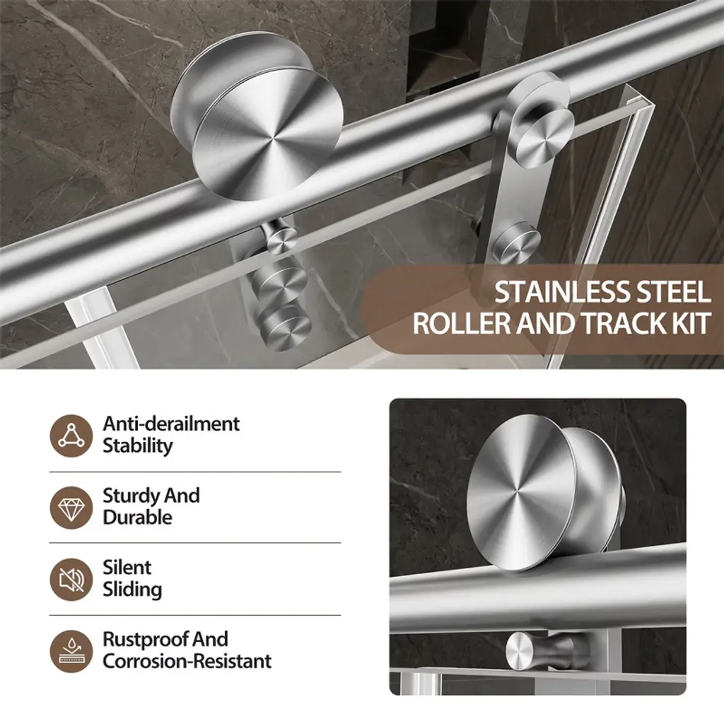 Transform your bathroom with this elegant frameless sliding shower door featuring 8mm clear tempered glass with explosion-proof film. The adjustable width (44"-48") accommodates most standard openings, while the brushed nickel stainless steel frame offers corrosion-resistant durability. Designed for modern bathrooms seeking safety and minimalist aesthetics.