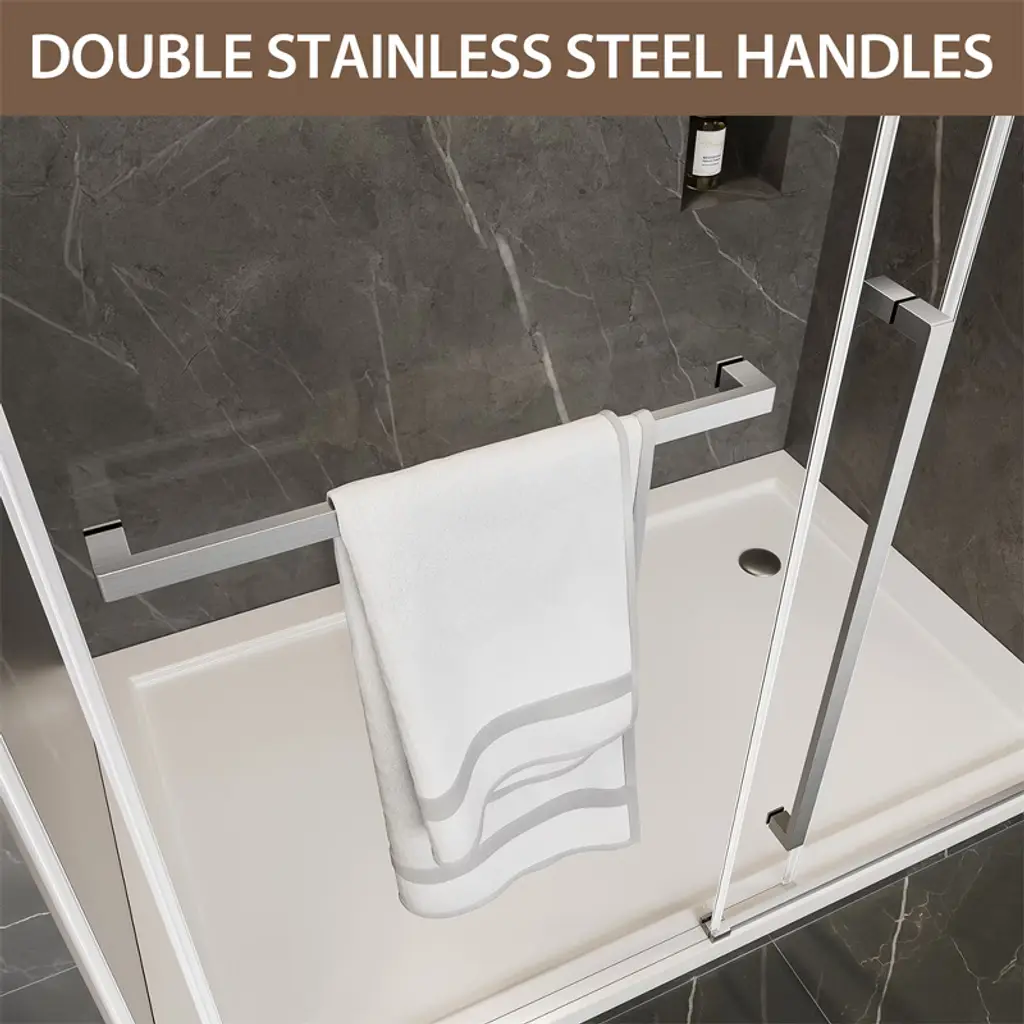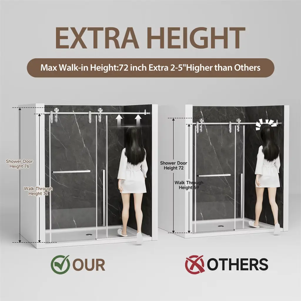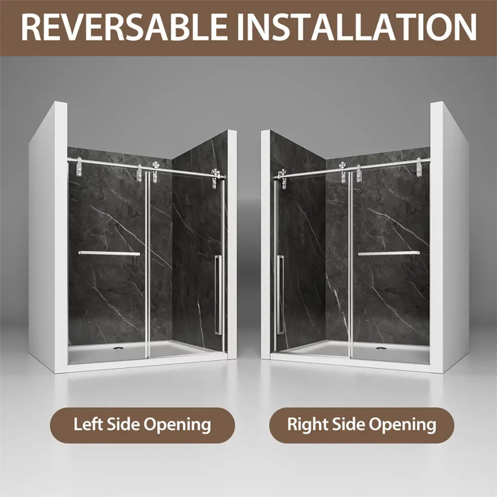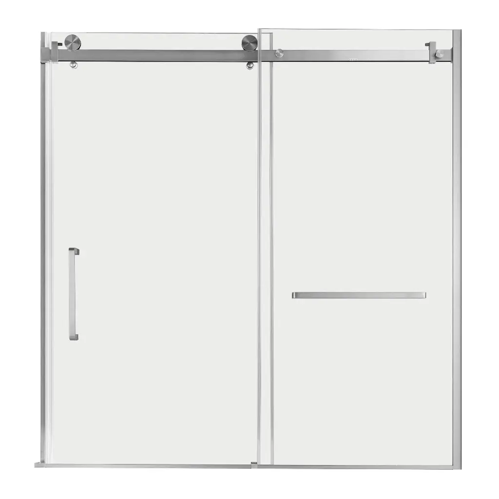 Transform your bathroom with this elegant frameless sliding shower door featuring 8mm clear tempered glass with explosion-proof film. The adjustable width (44"-48") accommodates most standard openings, while the brushed nickel stainless steel frame offers corrosion-resistant durability. Designed for modern bathrooms seeking safety and minimalist aesthetics.