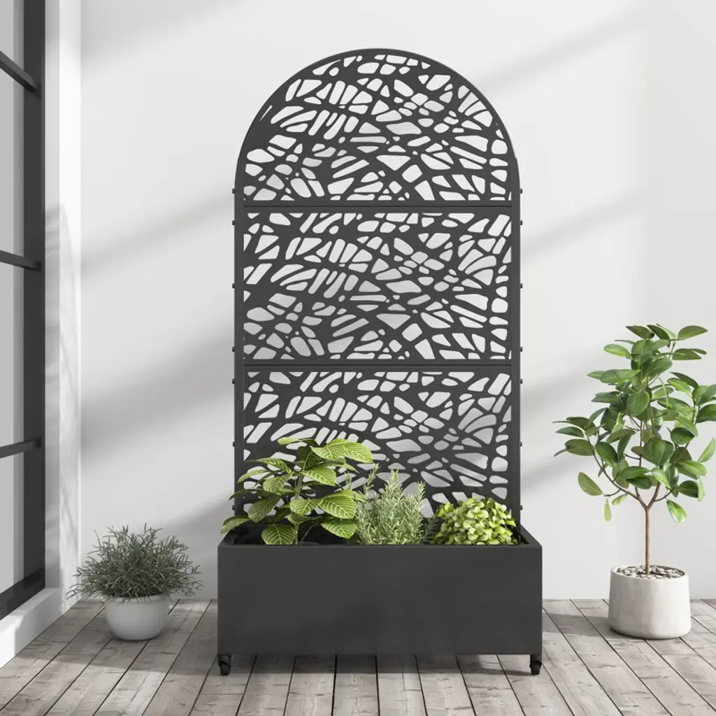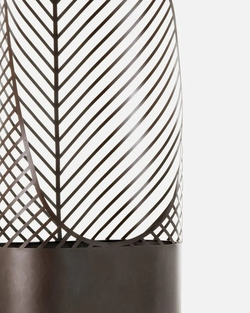 Screen-Pot is a contemporary take on the classic flower pot with a trellis for climbing vines. Its design was inspired by the shapes of nature itself: like a leaf among leaves, the trellis softly closes in on itself to embrace the plant. It can also act as a partition to create mobile plant dividers, natural screens that offer privacy and protection from the wind.Additional Information: Material: MetalFinish: DeMaistral AISI 304 stainless steel D3Dimensions: W. 88.5 x D. 44 x H. 146 cmAvailable in other color options: Burnished stainless steel, stainless steel, corten waxed D7 and natural corten