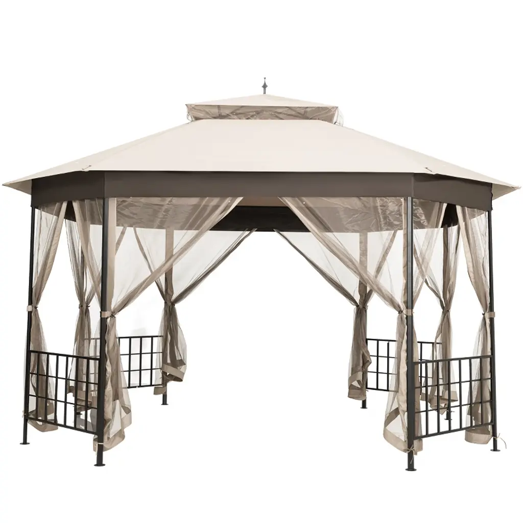 Eagle Peak 11x11 Pop Up Gazebo With Mesh Netting, Easy Up Screened Canopy For Patio And Backyard, Easy Set Up Outdoor Gazebo (Khaki)