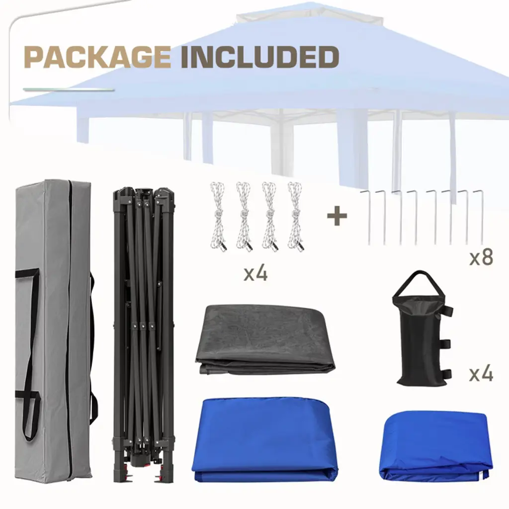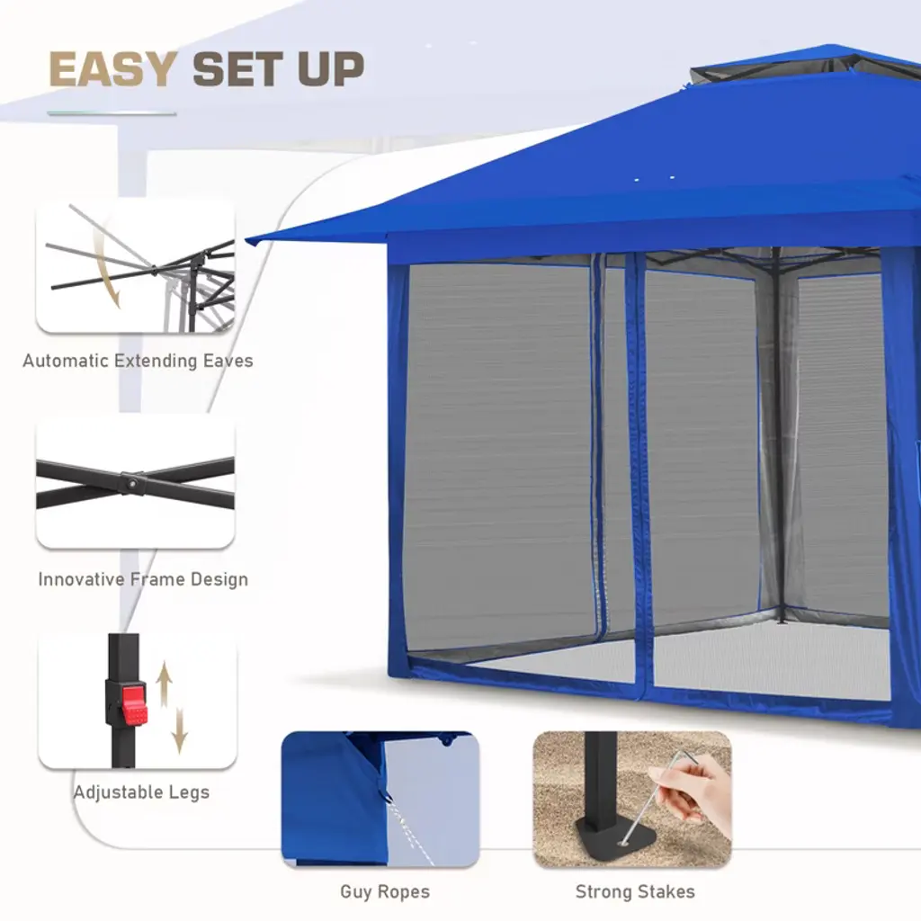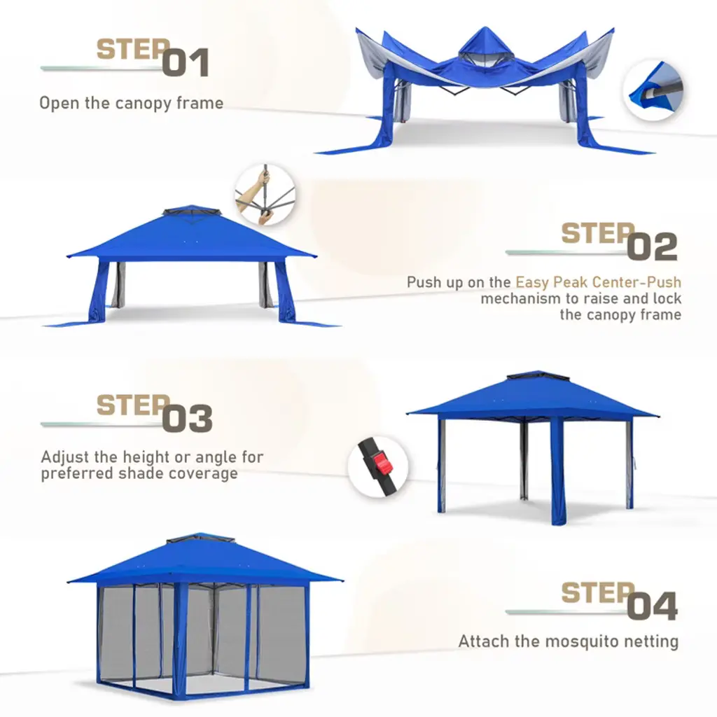Eagle Peak 13x13 Pop Up Gazebo With Mesh Netting, Easy Up Screened Canopy For Patio And Backyard, Easy Set Up Outdoor Gazebo (Blue)