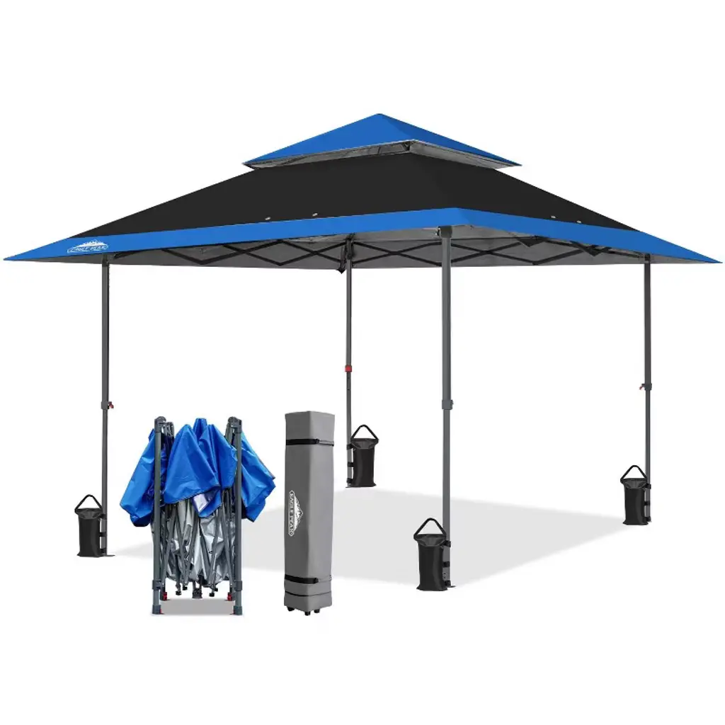 This pop-up gazebo tent is super easy to set up thanks to the Peak Push system, which is a patented center lock. You don’t need any tools, and it opens and closes in just a few seconds from the center. The canopy top is extra large at 13x13 feet, giving you plenty of shade for up to 12 people to hang out under. It covers 169 square feet, so there’s lots of room! The top is made from 150D Oxford fabric, which meets CPAI-84 flame resistance standards and has UPF 50+ UV protection to keep you safe from the sun. Plus, the vented design helps with airflow, and the water-resistant material will keep you dry during light showers. There’s also zippered netting that acts as a barrier when closed but can be tied back if you don’t need it. This netting even goes up into the vented top, giving you more coverage inside the tent.