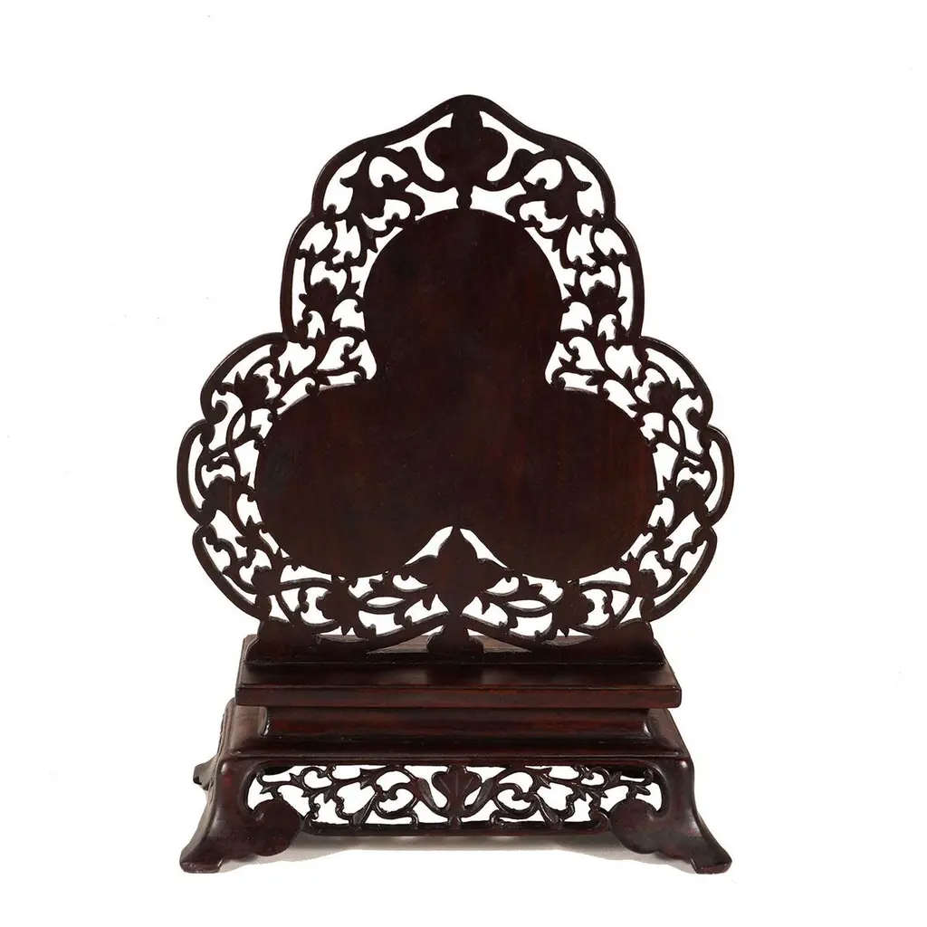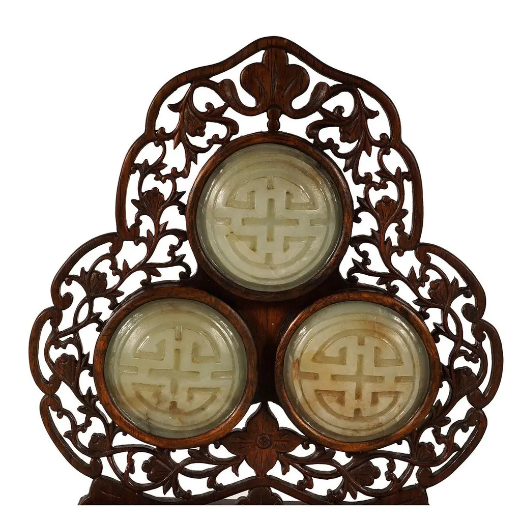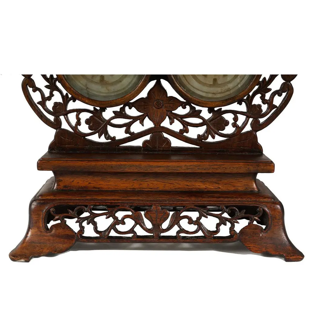 Early 20th Century Chinese Hand Carved Rosewood Table Screen With Jade Insert